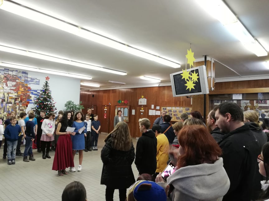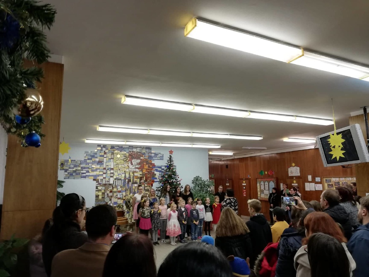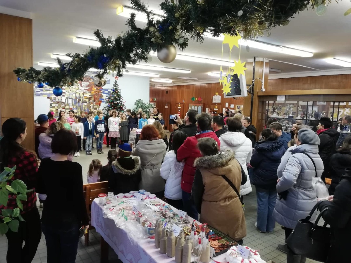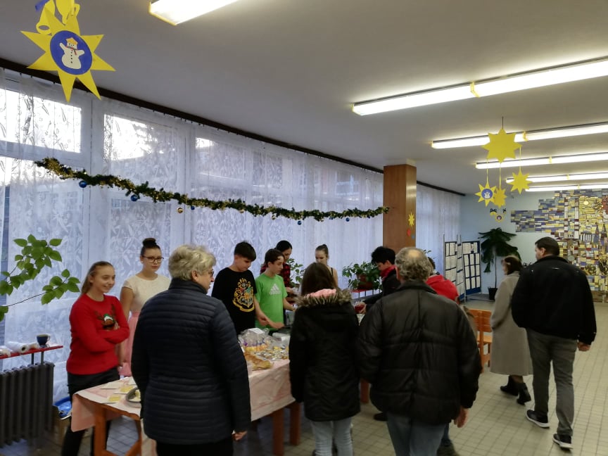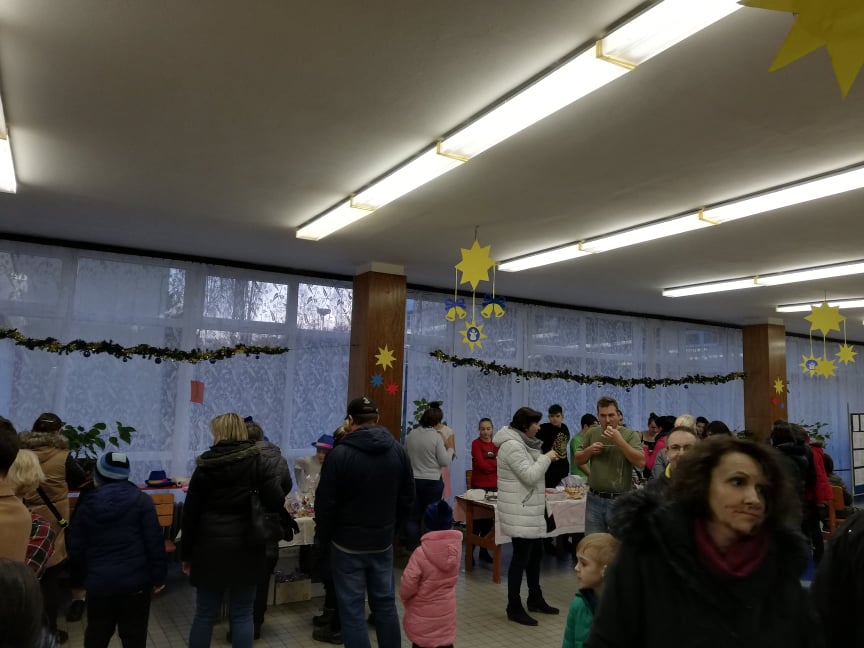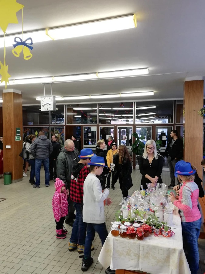 Na úvod jarmarku se představili žáci pátých tříd se svým hudebním programem, na který navázal s několika vánočními písněmi školní pěvecký sbor Palášek. Pro rodiče a návštěvníky byl otevřen školní krámek, kde si mohli zakoupit teplé nápoje, k zakousnutí žáci prodávali sladké i slané dobroty. Hlavní stánek nabízel nejrůznější žákovské výrobky, například přáníčka, keramiku, domácí balzám na rty nebo vánoční skřítky.
