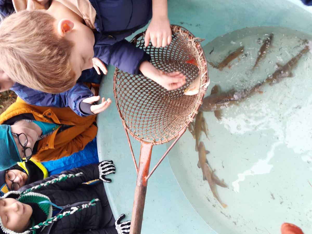 Ryba rybě povídala... - tak se nazýval program, za kterým jsme se v úterý 26.11.2024 vydali do rodinného rybářství Haering. Prošli jsme se kolem rybníka a dozvěděli se mnoho nových informací o životě v něm i jeho okolí. Poznali jsme škebli rybničnou a podívali se do sádek na kapry. Potom nás čekala nejzajímavější část - seznámení se s kapry. líny, okouny, karasy, ploticemi i sumečkem pěkně zblízka. Dokonce si děti mohly vzít rybky do rukou, nebo je zkusily vylovit podběrákem. Všem se zajímavý program moc líbil.