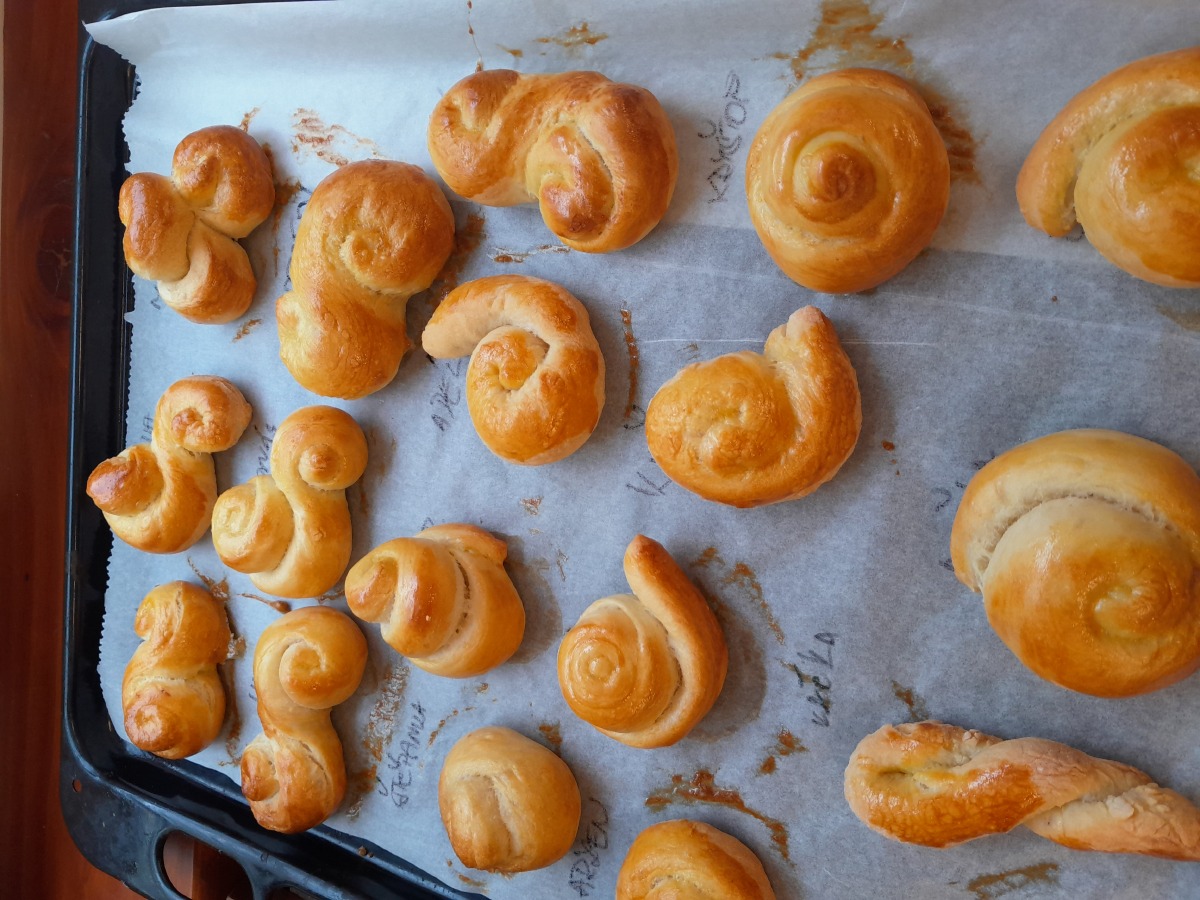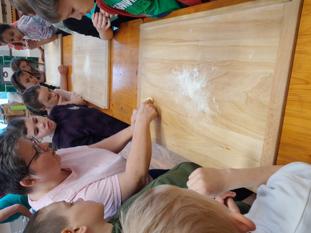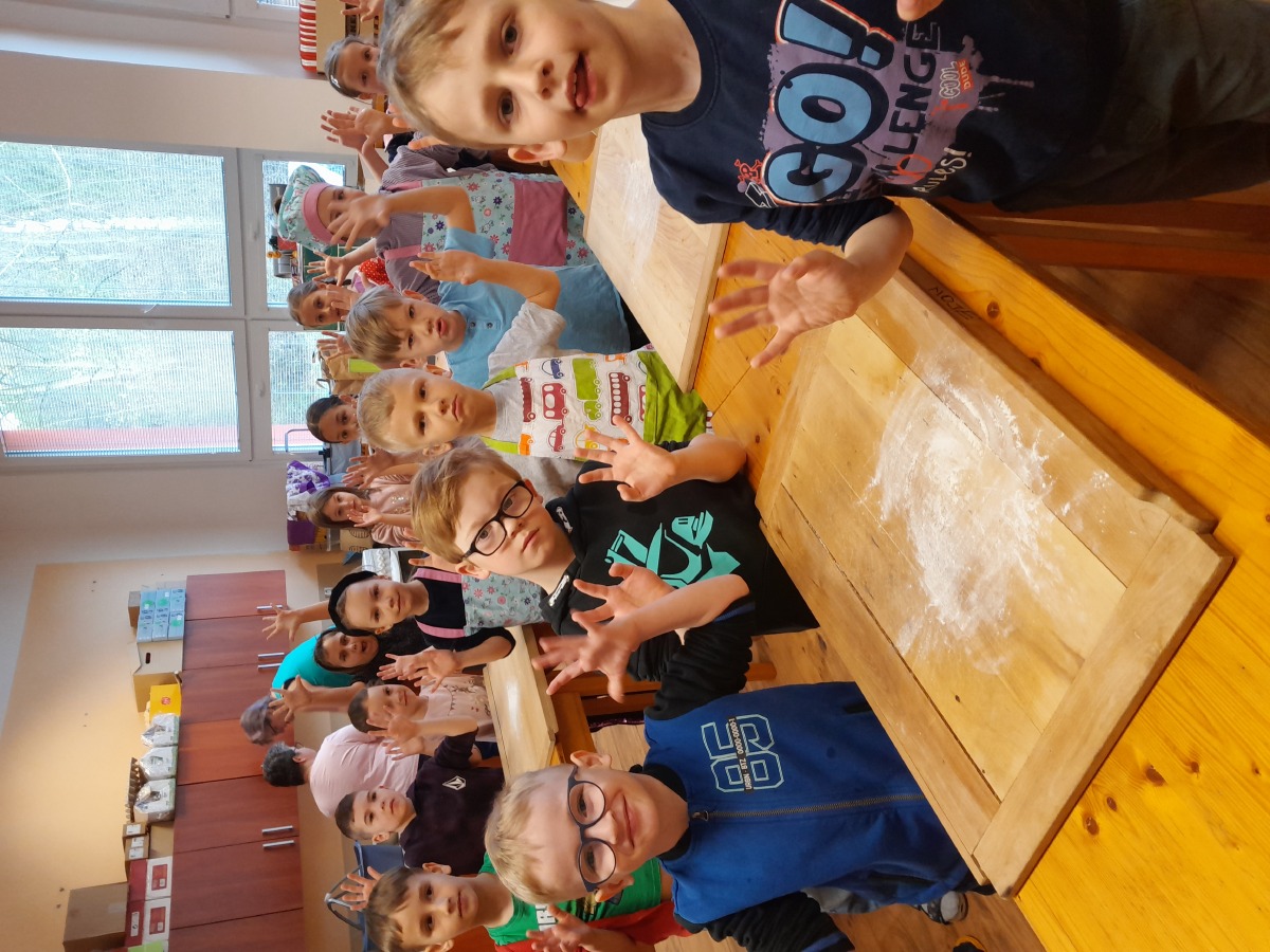 Ve čtvrtek 10.4.2025 čekalo žáky I.A pečení ve velikonoční dílničce. Z připraveného těsta vznikaly různé tvary, hlavně ptáčci, srdíčka a jidášky. Každý vytvořený kousek si děti potřely rozšlehaným vajíčkem. Aby jim čas po dobu pečení utíkal, zasoutěžily si. Rozdělily se do dvou skupin a snažily se uhodnout hádanky, pohádky, písničky nebo básničky, které se nějak týkaly pečení. Obě družstva si vedla skvěle a skončila se stejným počtem bodů. Mezitím se místností začala linout lákavá vůně. Vše se krásně upeklo a děti si domů odnesly sladké dárečky.