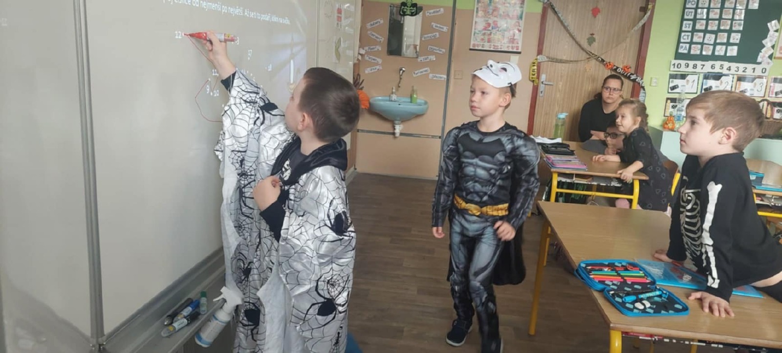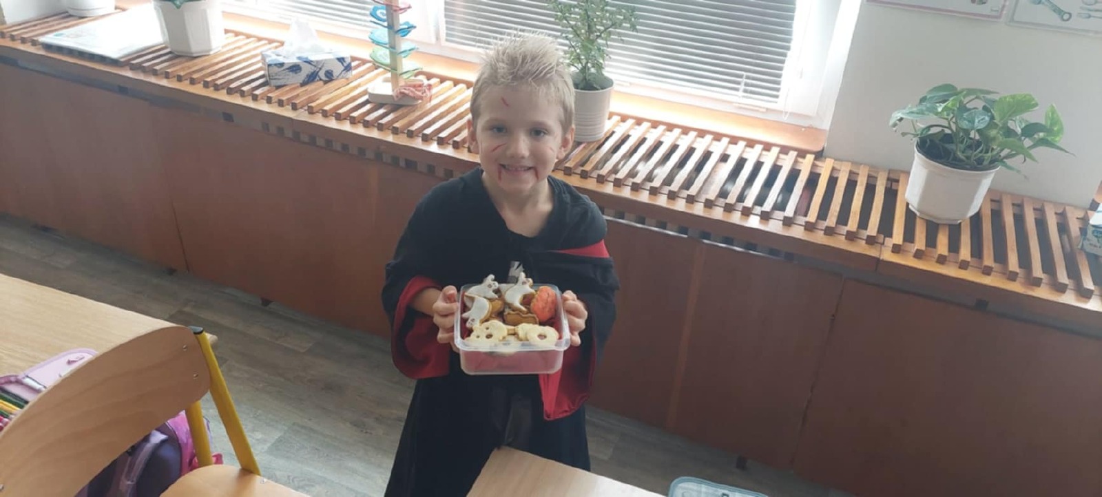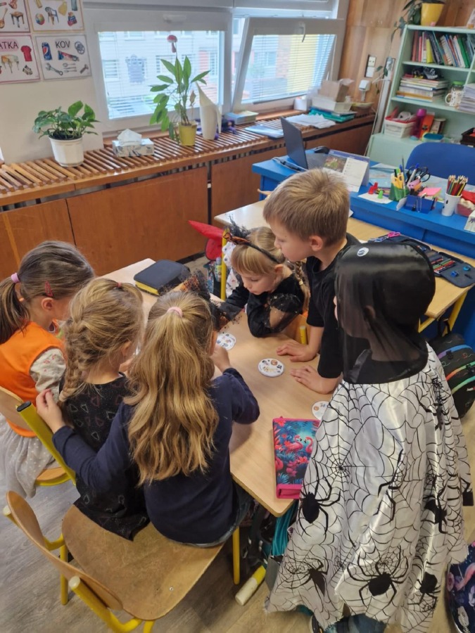Dnes jsme si vyzkoušeli první projektové vyučování. Protože se blíží Halloween, celý den jsme střídali různé aktivity. Četli jsme s pavouky, běhali jsme s duchy, poznávali hmyz, strašili, počítali „zombíky“, skládali kostlivce, a nakonec snědli sladkou odměnu. Tímto děkujeme mamince Vojtíka za výborné perníčky a linecké. Celý den se nám moc líbil a těšíme se na příští projekt.