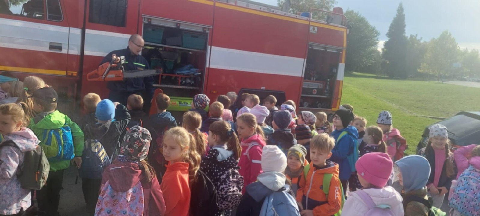 Včera proběhl v naší škole sportovně- branný den. I prvňáčci si vyzkoušeli, jaké je opustit školu v co nejkratším čase. Evakuace se zdařila, a tak nám nic nebránilo v tom na vlastní oči si prohlédnout velké hasičské auto, které za námi přijelo na shromaždiště. Dobrovolní hasiči z Malína nám přijeli ukázat svoji techniku. Povídali různé historky ze zásahů, ukázali hadice, kleště a mnoho dalšího. Říkali jsme si, co práce hasiče obnáší a kdy a jak si hasiče musíme zavolat. Také nás pozvali na hasičský kroužek. Moc děkujeme za jejich ukázku a čas, který s námi strávili.