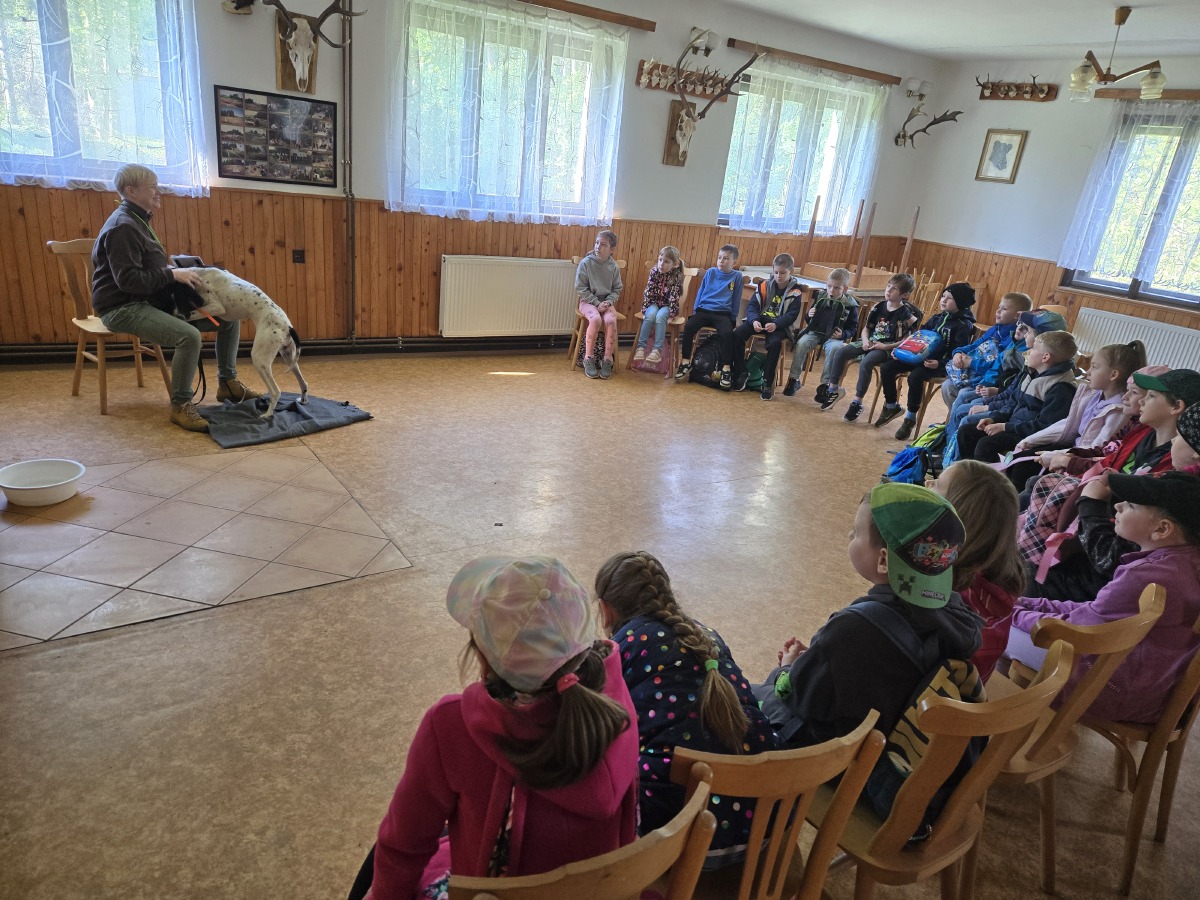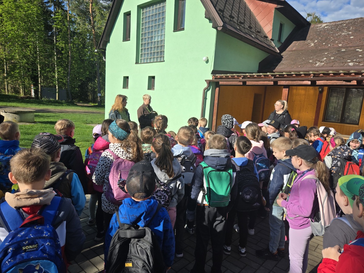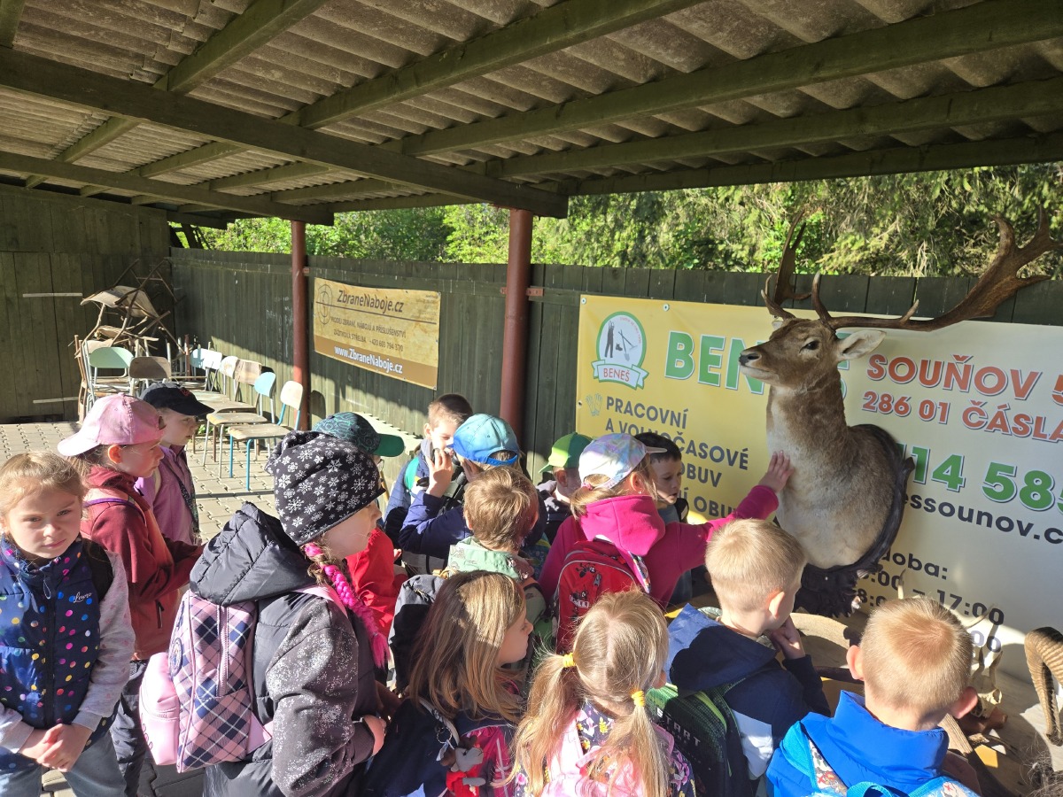 Den Země jsme společně s ostatními prvňáčky oslavili v Olšanech v myslivecké chatě a jejím okolí, kde pro nás měli myslivkyně připraveno povídání o zvířatech, ukázky různého paroží a věcí spjaté s myslivostí. Dokonce jsme si směli poladit i loveckého psa, který je právě ve výcviku. Nakonec nás čekala zvířecí stezka, ve které jsme nově nabyté vědomosti hned zúročili.