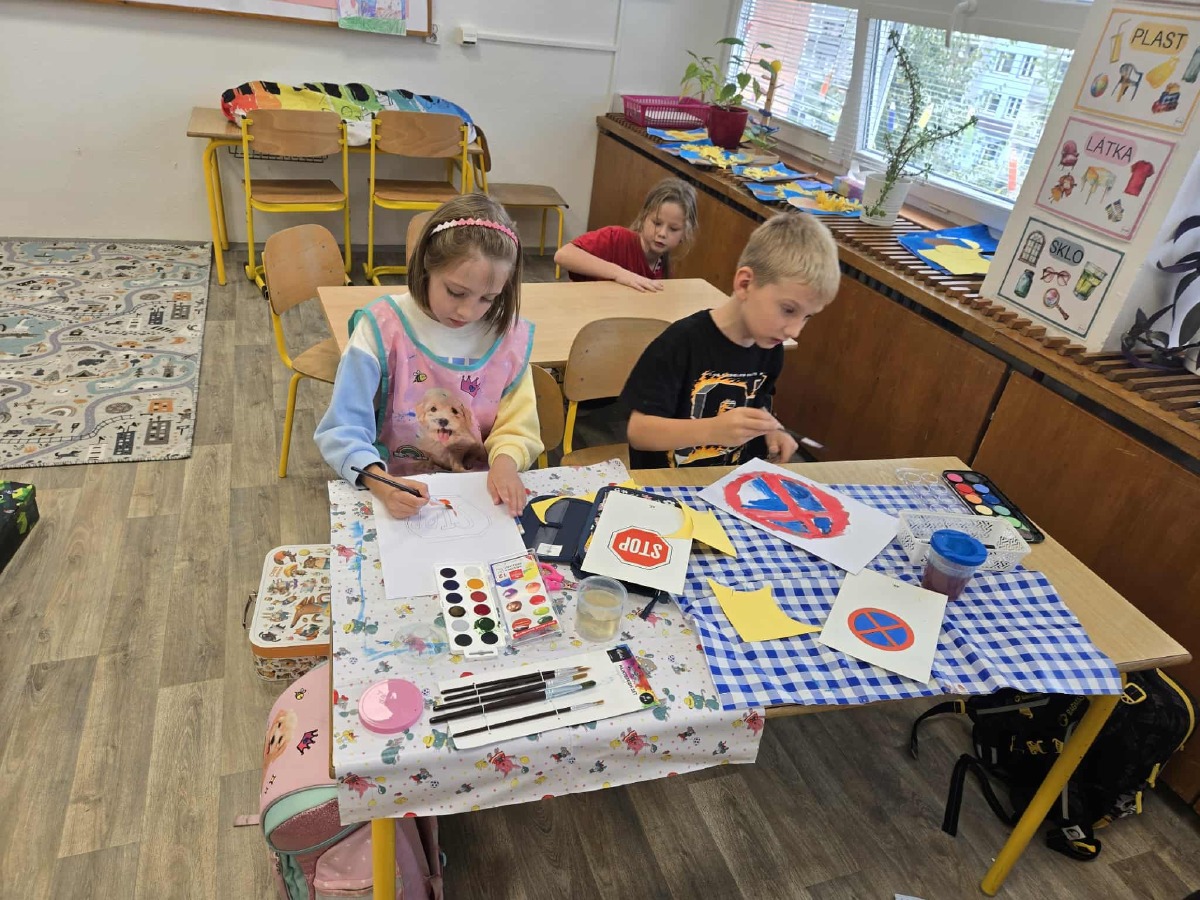 Druháčci se také zapojili do projektu PĚŠKY DO ŠOLY A MĚSTEM. V rámci celého týdne jsme se vzájemně motivovali k pohybu, naučili se zásady bezpečného chování v silničním provozu. O prvouce jsme si povídali o cestě do školy, doplnili značky a vyhodnotili rizika nepatřičného chování. O pracovních činnostech jsme vyrobili některé dopravní značky, které běžně po cestě do školy potkáváme. V rámci tělesné výchovy nás čekala procházka po okolí školy. Na vycházce jsme každý nachodil 3 000 kroků. Jelikož nás šlo celkem 68 včetně dospělých, ušli jsme dohromady 204 000 kroků.