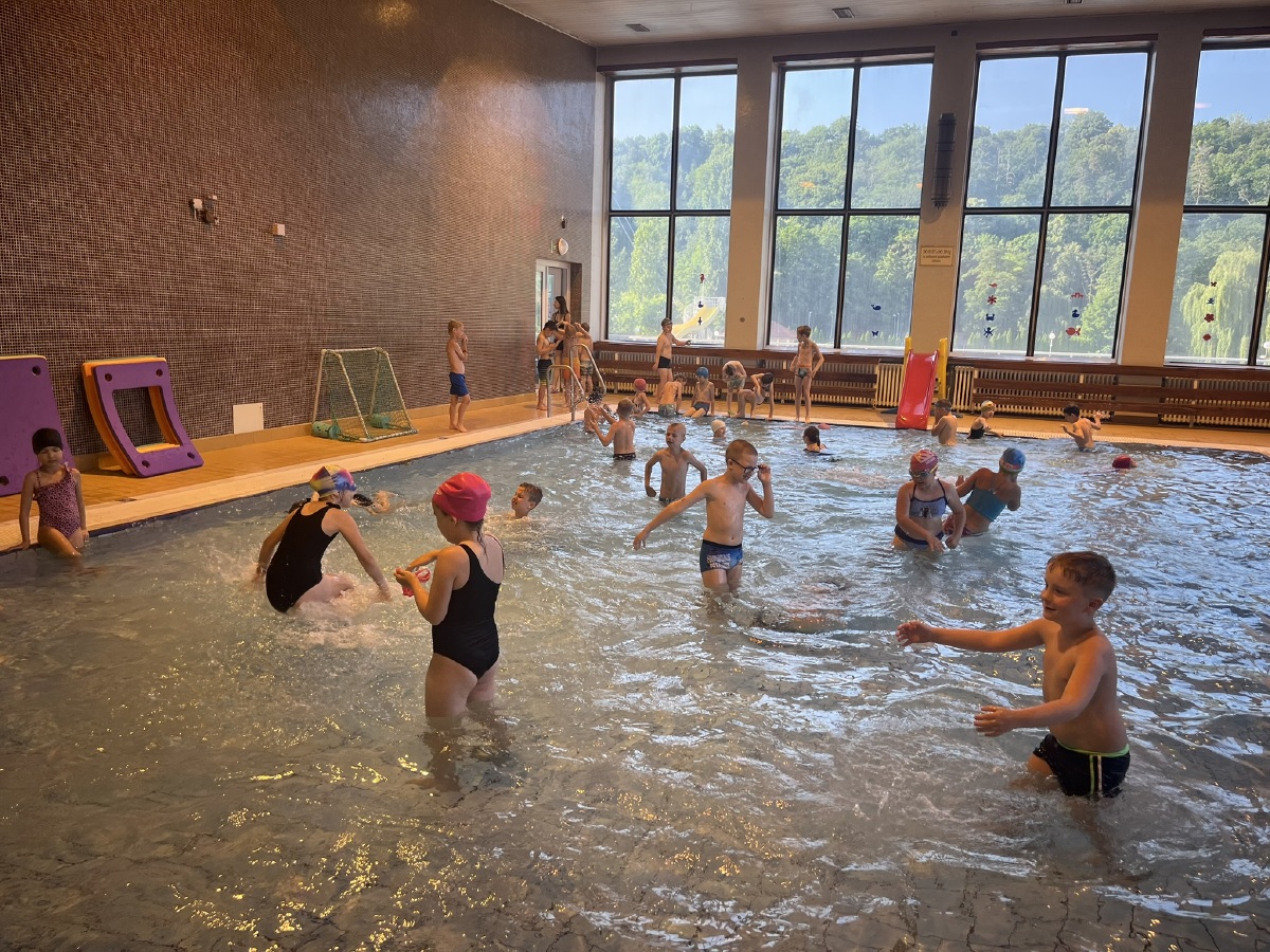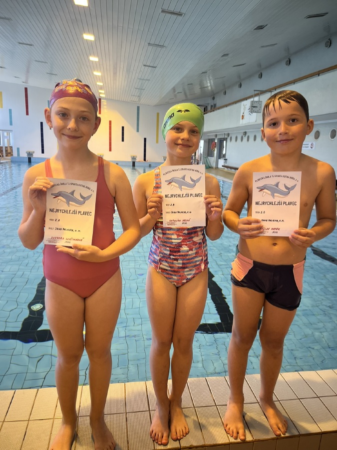 Dnes druháčci úspěšně ukončili plavecký výcvik! Během několika týdnů se naučili základní plavecké dovednosti – od splývání po první plavecké styly. Závěrečná lekce byla ve znamení závodů, kde každý předvedl, co se naučil. Za svou snahu si všichni odnesli zasloužené „mokré vysvědčení“. Gratulujeme!