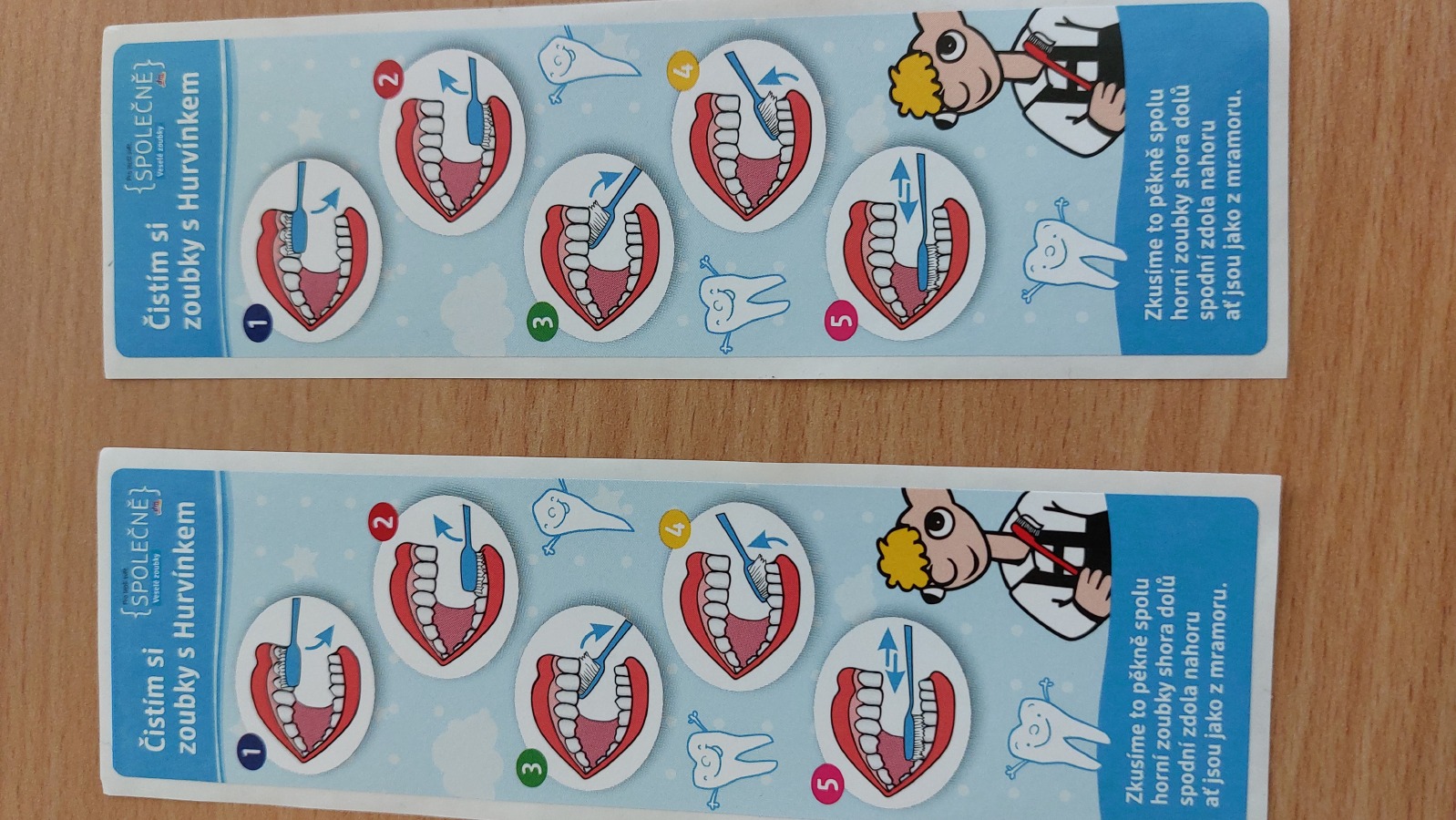 S žáky jsme si povídali o tom, jak zoubky fungují, k čemu je máme, jak rostou a mění se, co je zubní kaz. Po shlédnutí filmu Jak se dostat Hurvínkovi na zoubek, jsme probrali zásady správné péče o zoubky, jak si je čistit, aby byly bez kazu, proč navštěvovat zubního lékaře, či jak správně vybrat zubní kartáček. Následovalo vyplnění pracovních listů a na závěr dostaly všechny děti samolepku do koupelny a preventivní balíček „Veselé zoubky“.