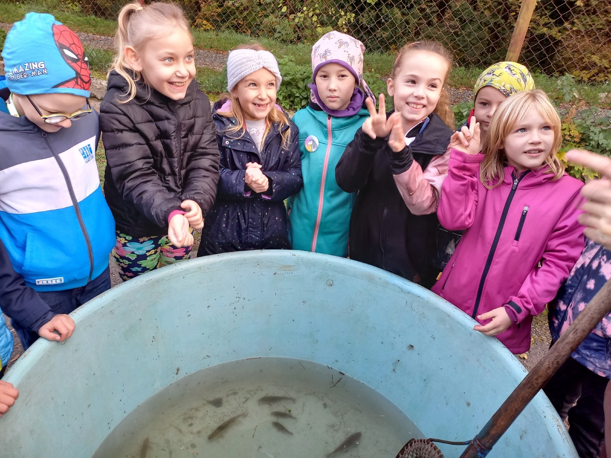 Naše třída se před podzimními prázdninami vydala za rybami. Dozvěděli jsme se spoustu zajímavých informací o chovu ryb v Kutné Hoře, o životu ryb a některé jsme si mohli i pohladit. Byl to zážitek. Děkujeme rybářství Haering v Kutné Hoře.