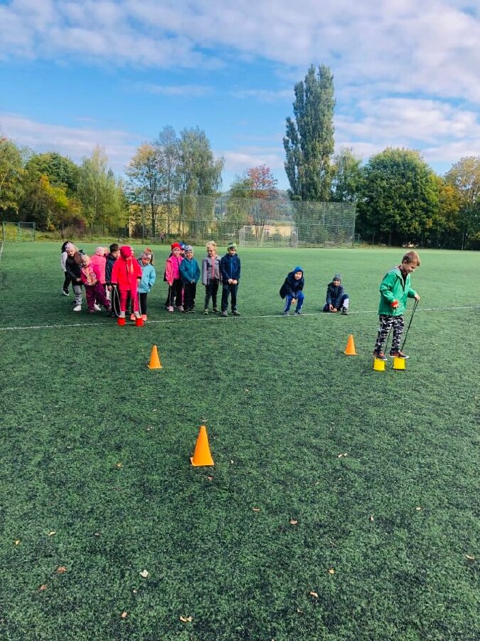 Dne 4.10.2022 ve třídě 1.A proběhl sportovně-branný den. Po vyhlášení poplachu a evakuaci školy se děti přemístily na umělé hřiště, kde se konala první sportovní část dne. Po absolvování různých her a soutěží jsme se přesunuli zpět do třídy, kde proběhla branná část dne. Děti si v této části osvojily nejen důležitá telefonní čísla, ale i třeba jak se zachovat při vzniku požáru, nebo co dělat v případě nutnosti poskytnout první pomoc. Děti si dopoledne pořádně užily a těší se zase na další rok.