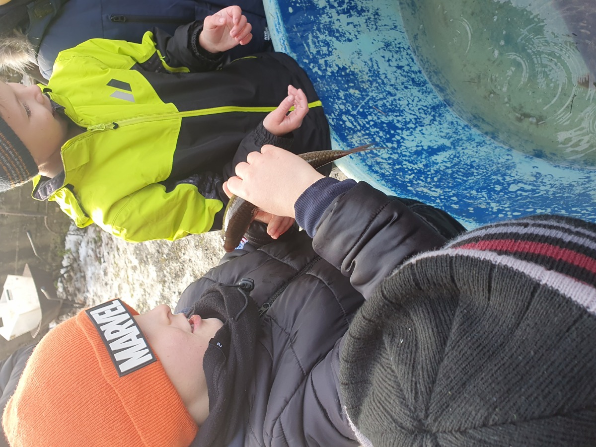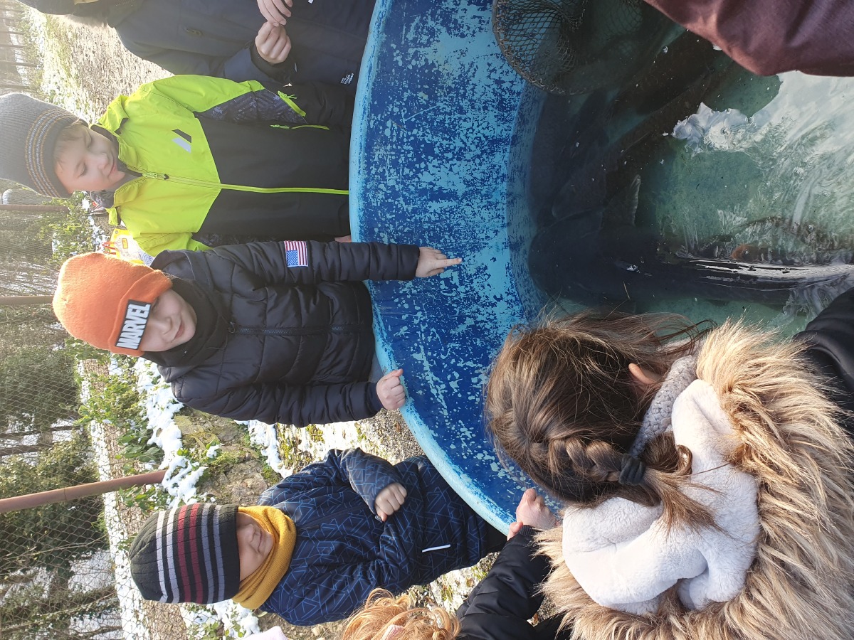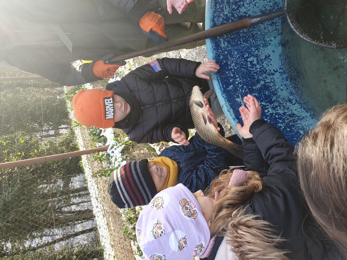 Druháci vyrazili na exkurzi do kutnohorského rybářství u Haeringů, kde se dozvěděli spoustu zajímavých informací o chovu ryb. Přímo u kádě měli možnost si ryby zblízka prohlédnout a podržet v rukou. Obdivovali velikost sumce Josífka a zažili i chvilku napětí, když se štika zakousla do ruky panu majiteli:) Při poznávání ryb a během obchůzky celého areálu a rybníka si zopakovali učivo z Prvouky. Pro děti byla návštěva rybářství a prohlídka ryb velkým zážitkem.