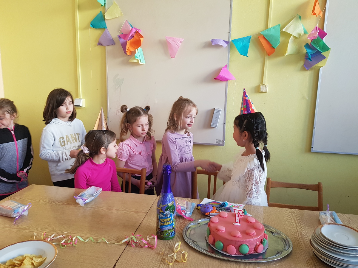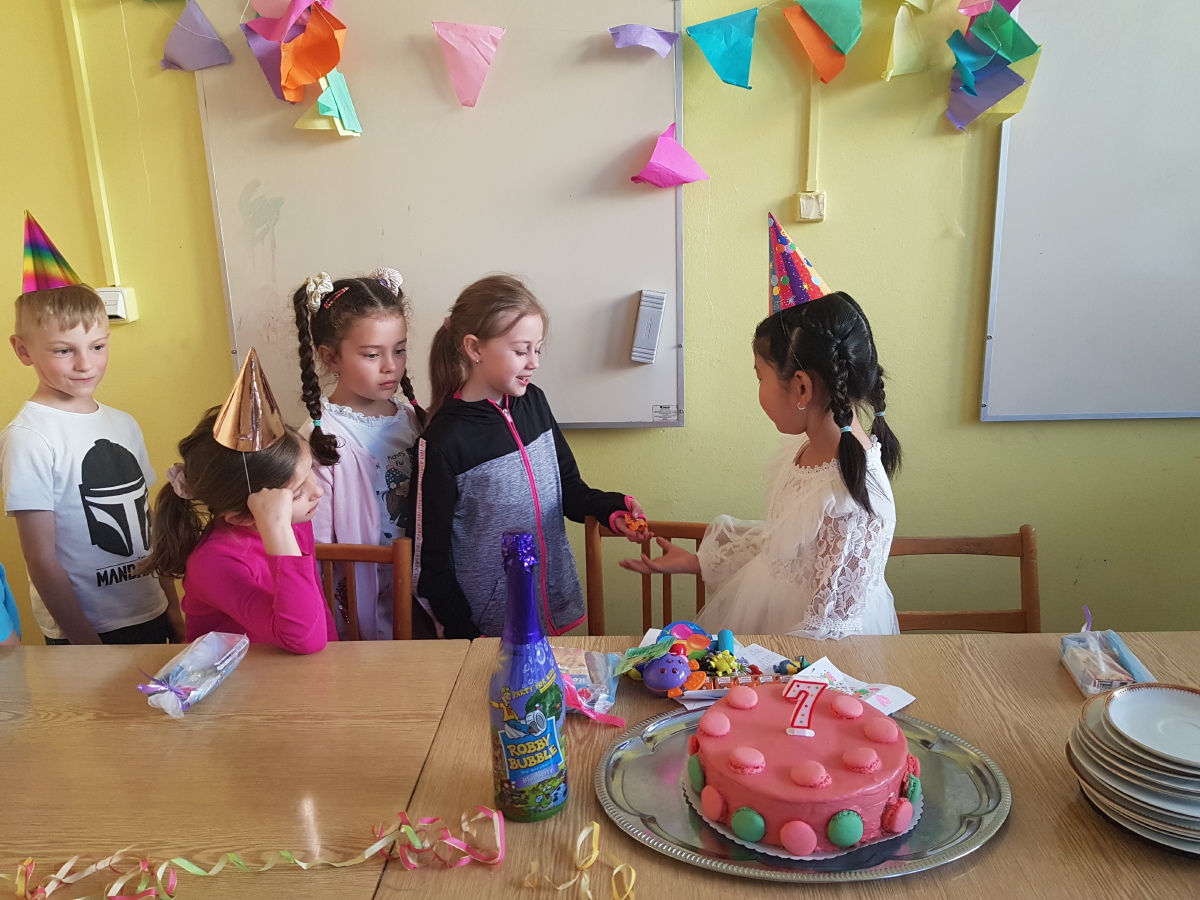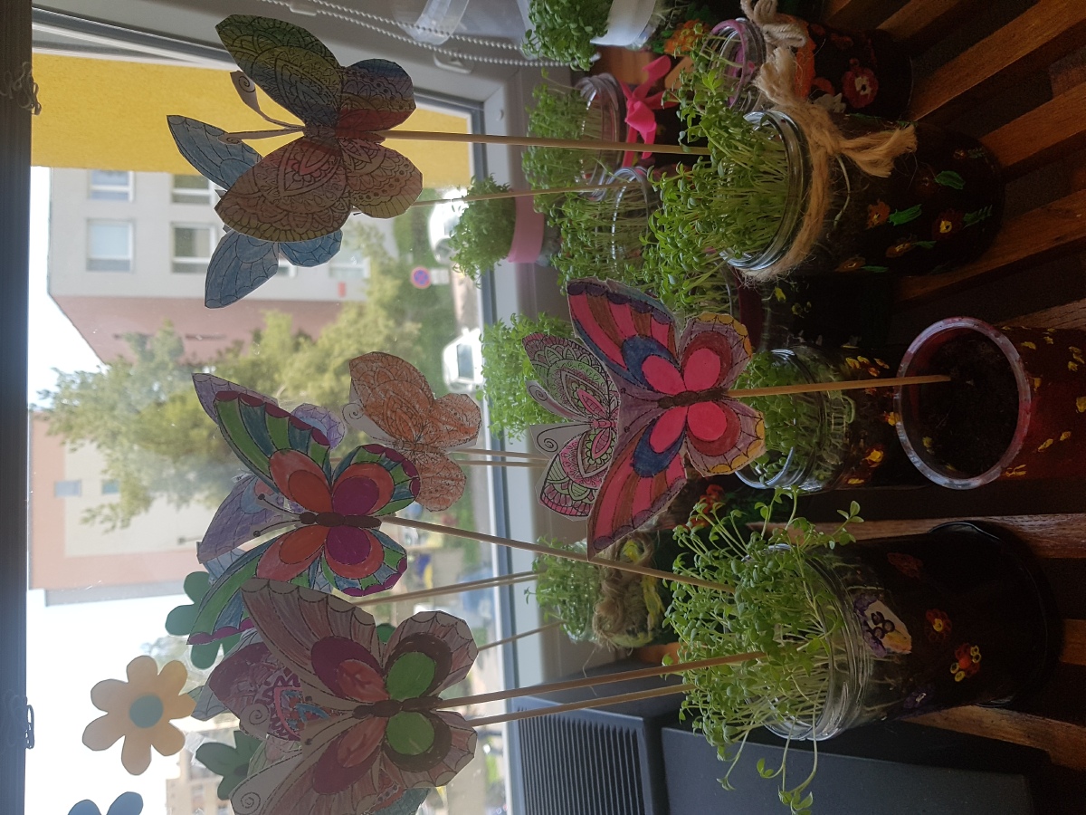 S prvňáčky jsme se v úterý vypravily do školní kuchyňky, abychom tam náležitě oslavily narozeniny naší kamarádky Aminky. Ta s maminkou pro děti přinesla výborný dort, chipsy, balíčky s džusem a bonbony, nechyběla ani svíčka a přípitek dětským šampaňským. Děti Amince napsaly přáníčka a v hodině angličtiny si nacvičily narozeninovu písničku. Dále jsme celý týden zasvětili maminkám a chystali dárečky na Den matek. Děti se naučily básničku, namalovaly sklenice a vyzkoušely si setí řeřichy. Přitom si pěkně procvičily ř a celý týden pozorovaly, jak řeřicha klíčí a roste.