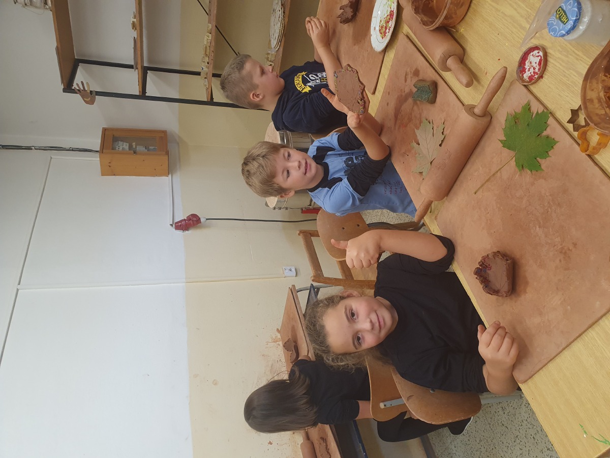V rámci VV a PČ navštívili žáci z 2. B školní keramicou dílnu. Zde si vyzkoušeli práci s keramickou hlínou. Vyrobili si podzimní misky z obtisknutých listů javoru. Misky si dozdobili sklíčky a po naglazování a vypálení si své první keramické výrobky odnesou hrdě domů. Všichni byli moc hodní a šikovní, práce se všem bez výjimky povedla, vzniklo 21 krásných keramických mističek.
