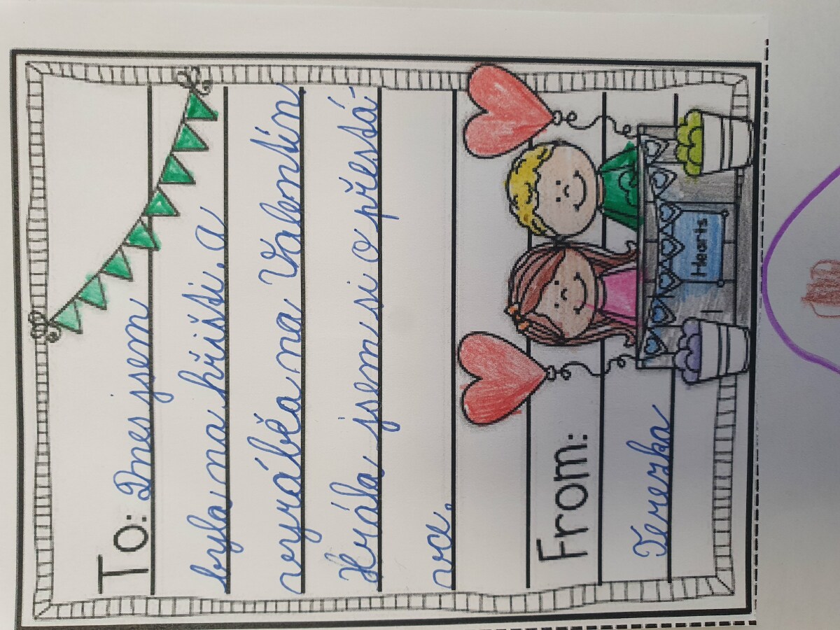 Dnešní valentýnský den si děti moc užily. V první části dne si byly zabruslit. Druhou část dne pak věnovaly tvorbě valentýnských přáníček.