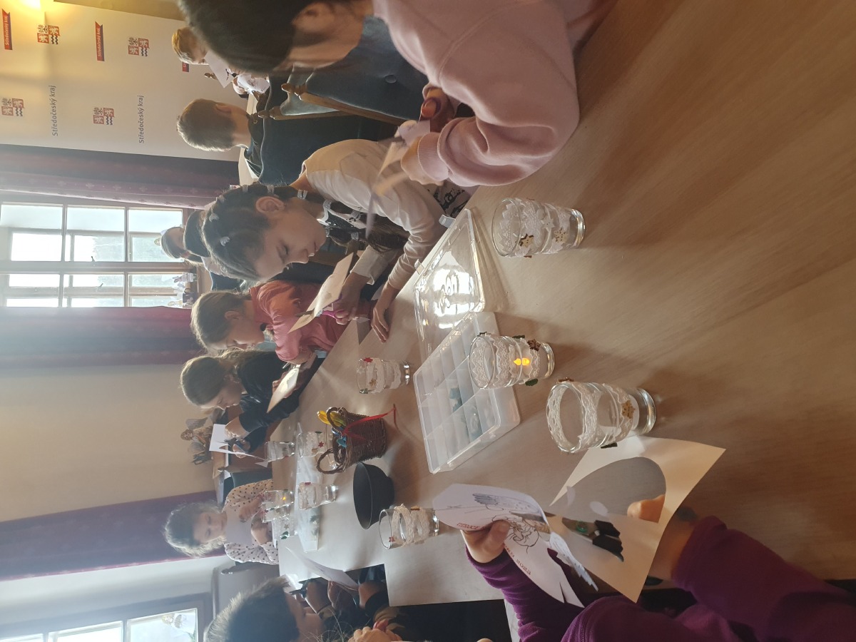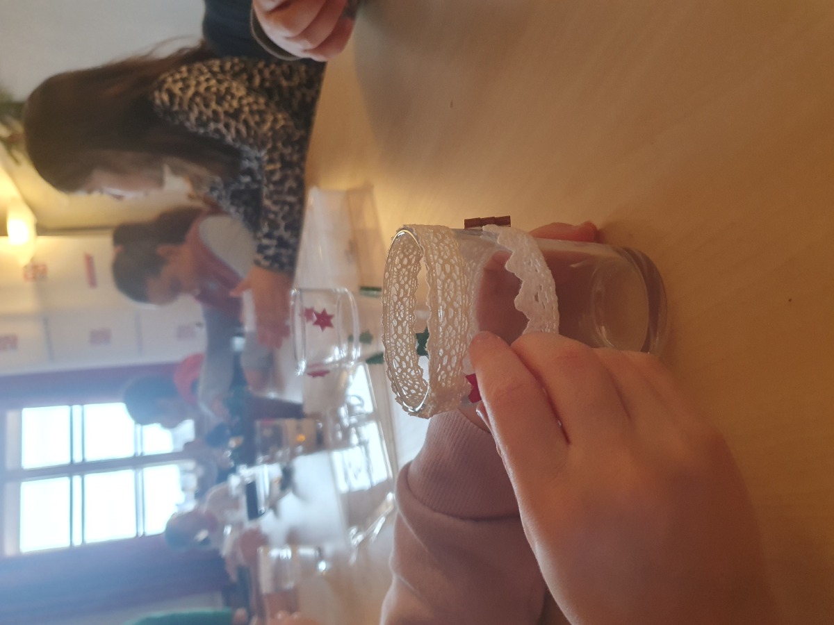 Součástí programu bylo vyrábění, děti si vyrobily krásný skleněný svícen nazdobený krajkou a zbyl čas i na vystřihování a skládání papírového andílka.