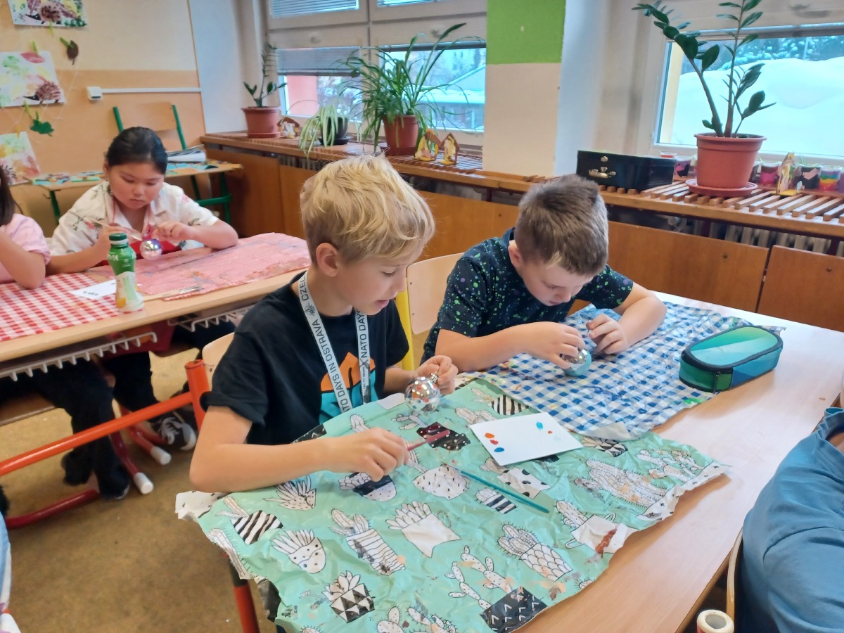 Každý také vyzdobil jednu z ozdobiček na náš vánoční stromeček.