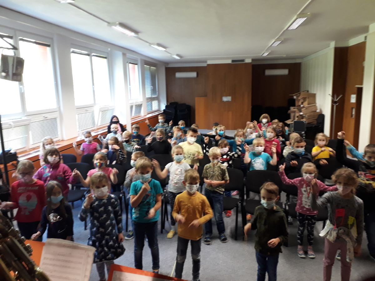 Děti se díky pohádce seznámily s příčnou flétnou, klarinetem, hobojem, fagotem a lesním rohem. Prvňáčci se naučili novou písničku a dokonce si zahráli na dirigenty.