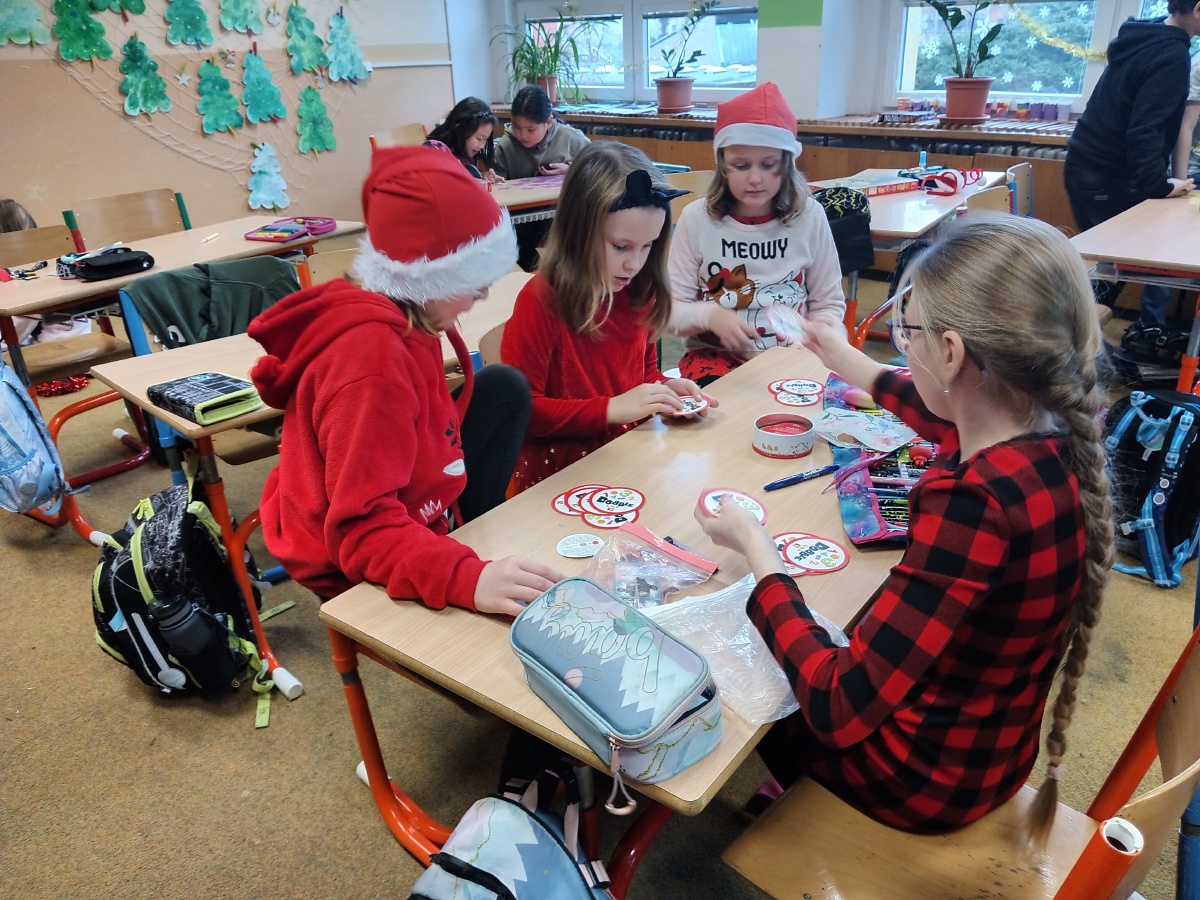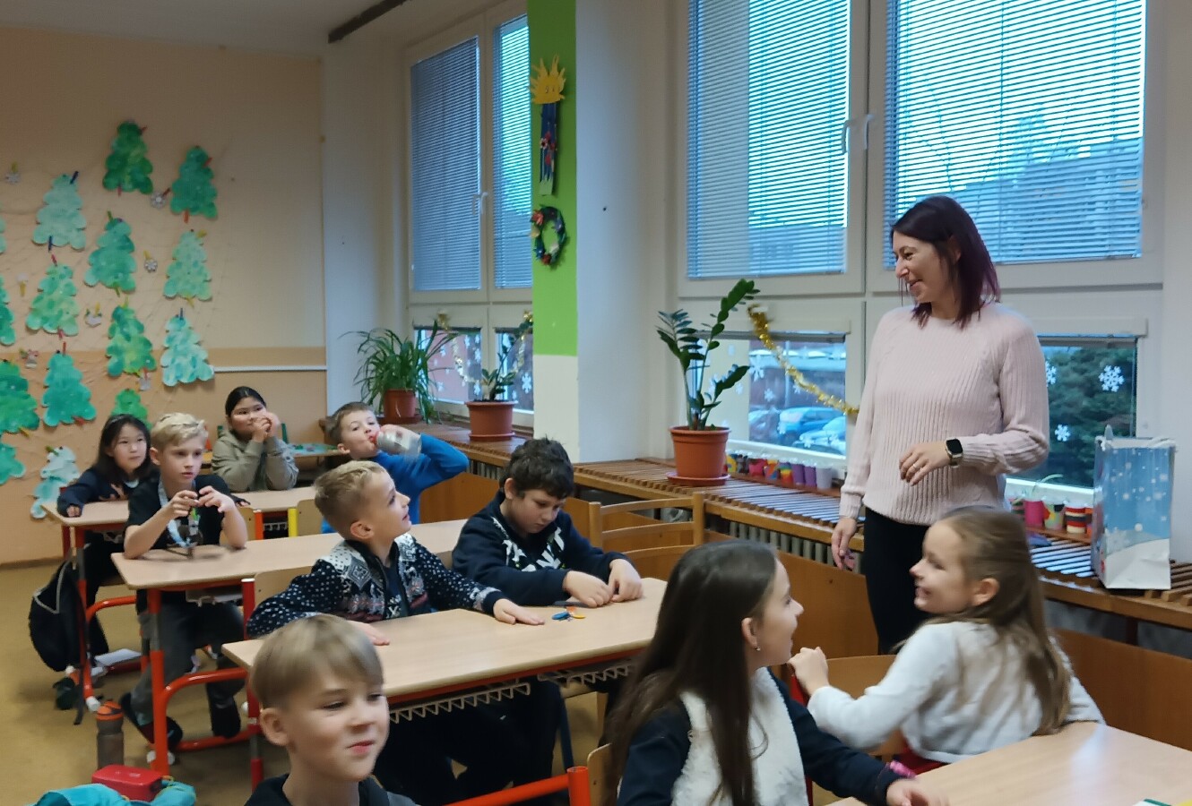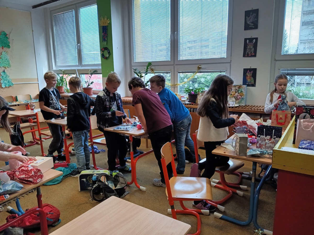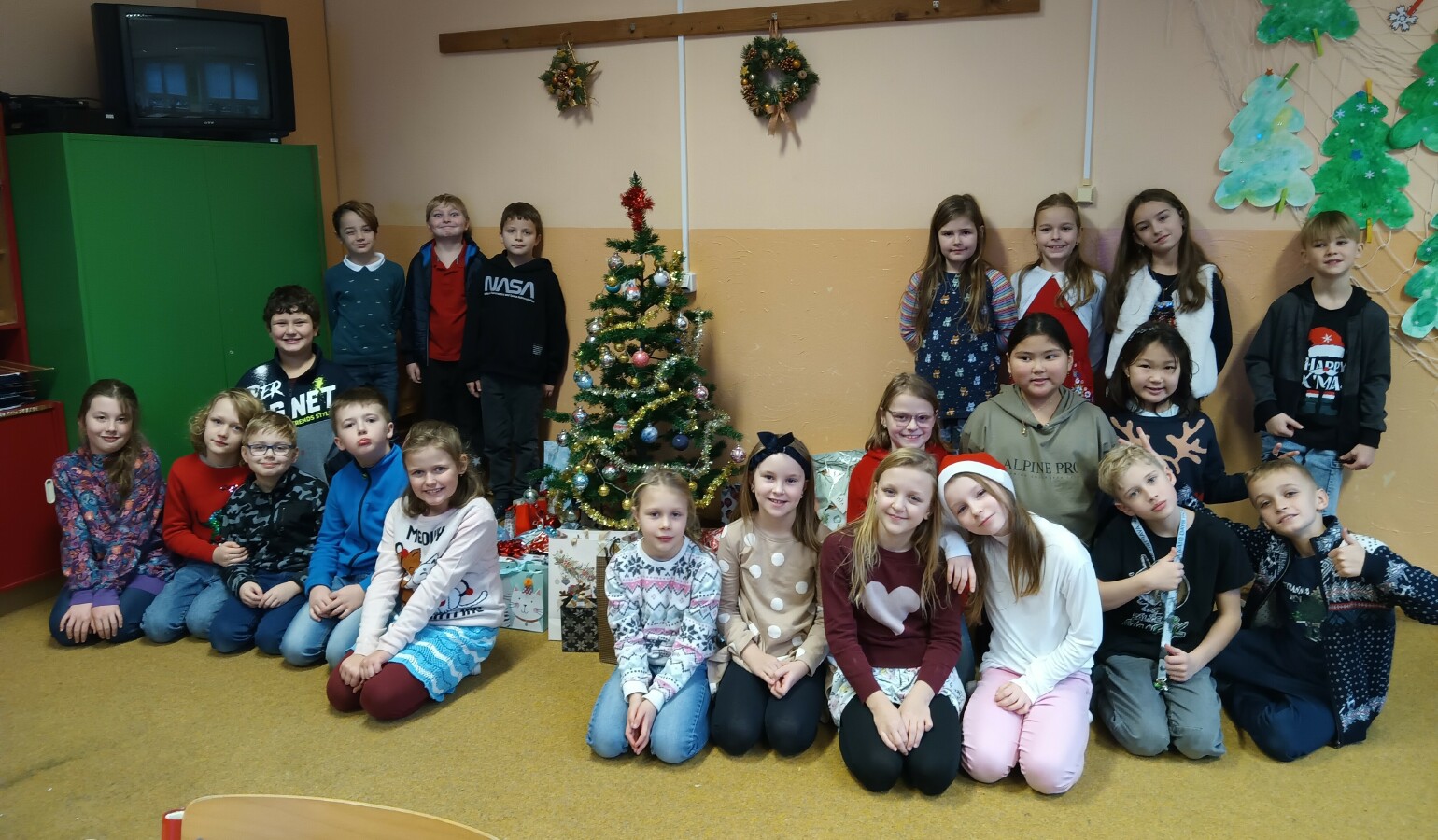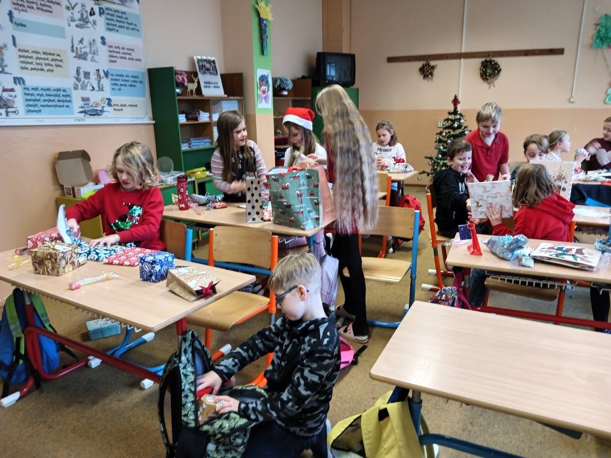 Děti si daly čaj, ochutnaly cukroví od spolužáků, poslechly si koledy a rozdaly dárečky.