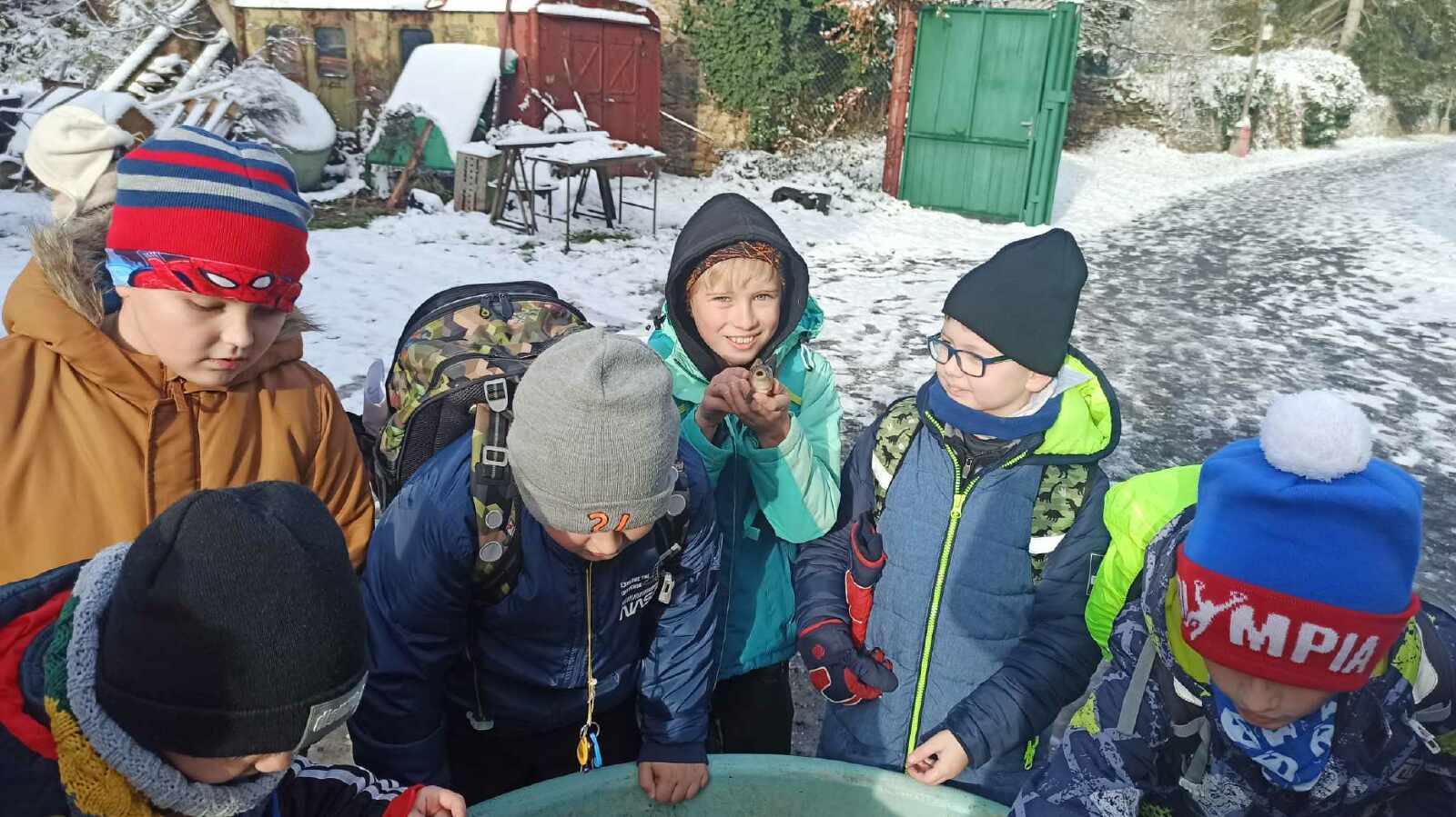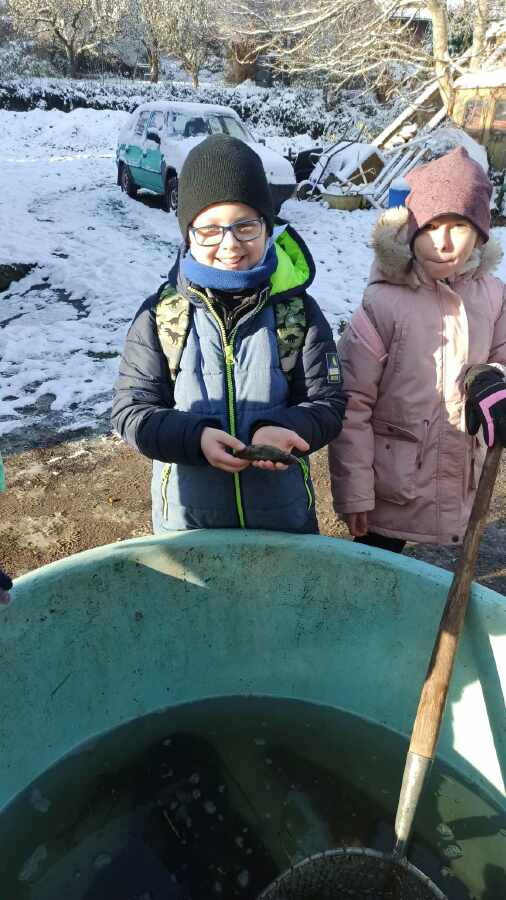 Největší radost však přinesla možnost, rybičky opatrně vylovit a "pochovat" si je.