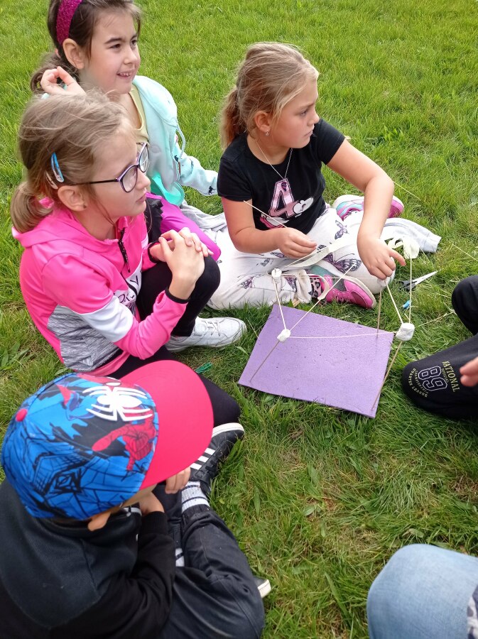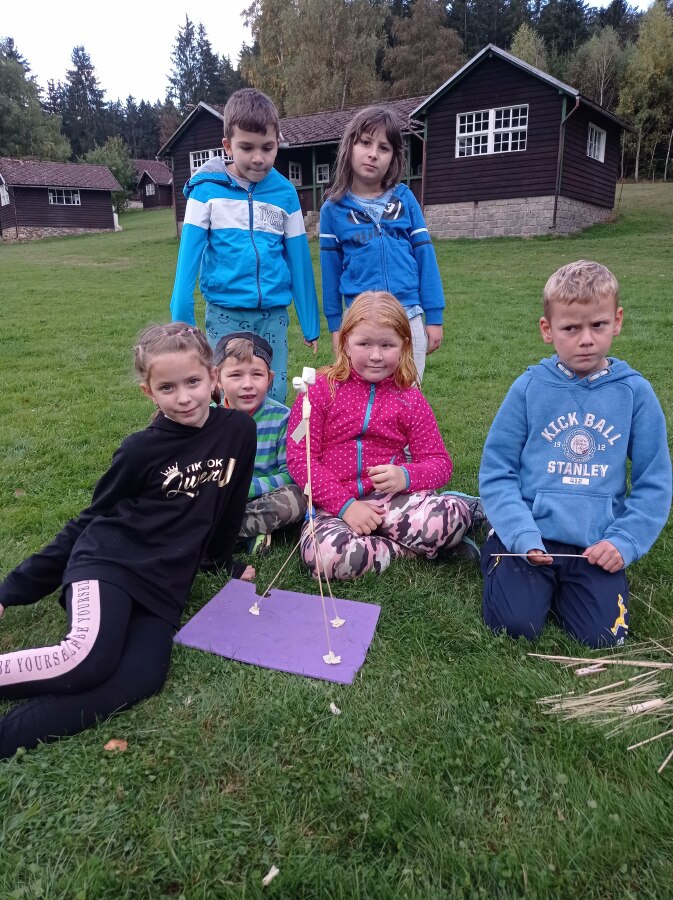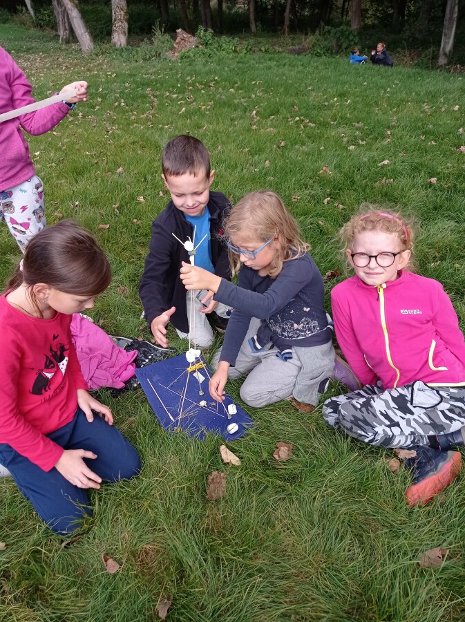 Plnili jsme nejrůznější úkoly a získávali "stavební" materiál (špejle, špagety, modelínu, nůžky, lepenku, kolíček...). Z toho jsme se pak ve skupinkách snažili postavit co nejvyšší věž, na které bude držet alespoň jeden bonbón "marshmallow". Vznikly neuvěřitelné a krásné stavby! ![]()