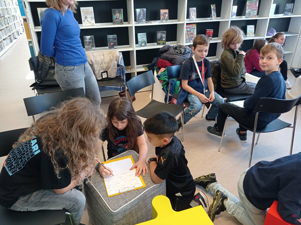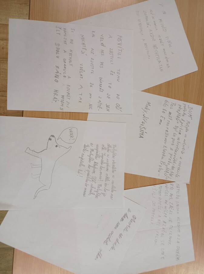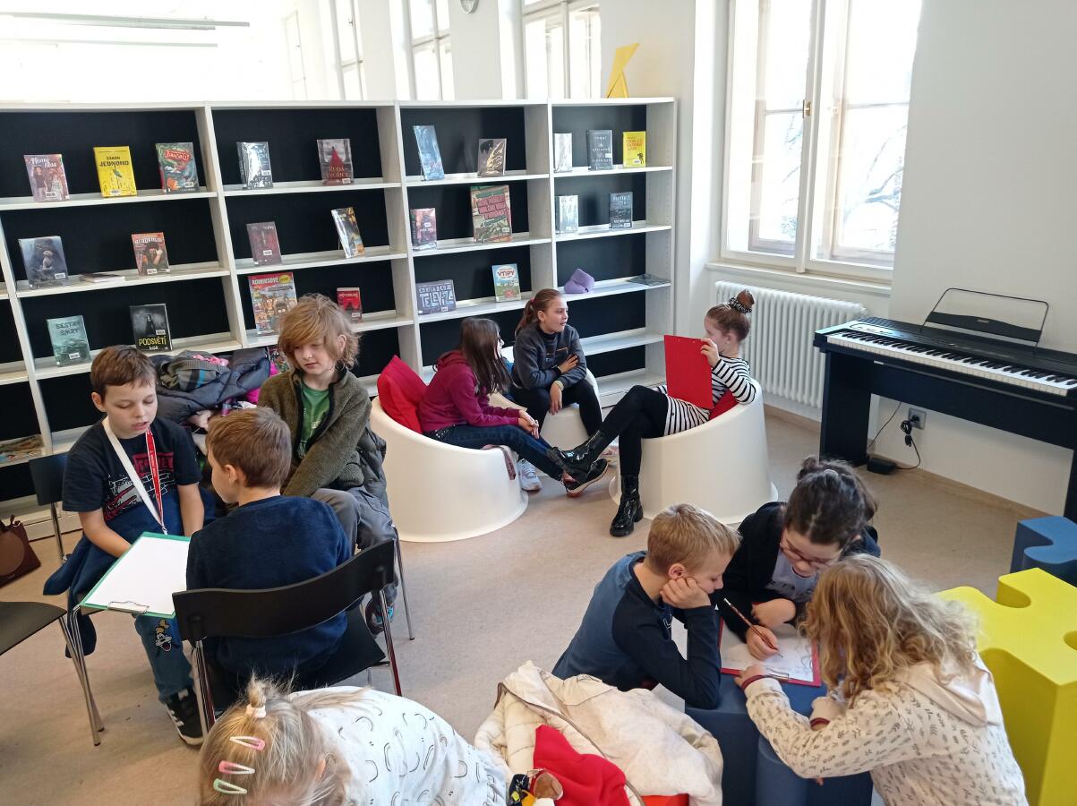 A tak jsme zašli na program Městské knihovny. Nejdříve jsme si povídali o strachu. Potom nám paní knihovnice přečetli úryvek z knížky, ale skončily v tom nejnapínavějším. Naším úkolem bylo vymyslet, jak to bylo dál... ![]()