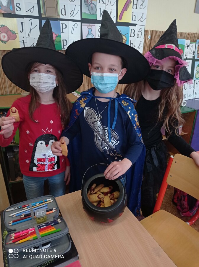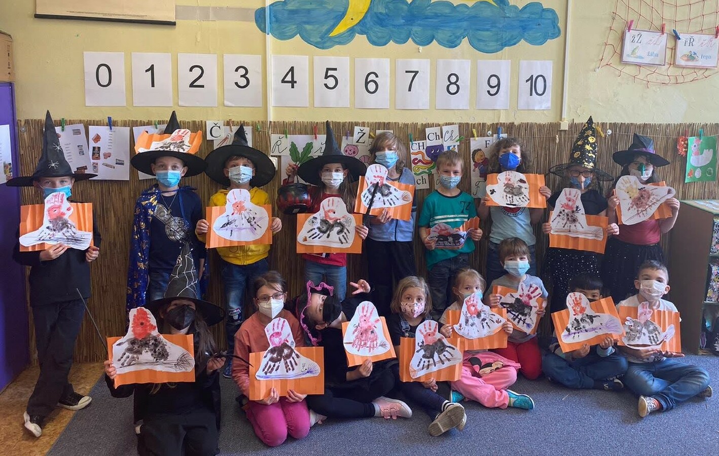 Při matematice jsem podle příkladů vybarvovali roztomilou ježibabku na koštěti. A ve výtvarné výchově si každý svou čarodějnici také vytvořil.![]()