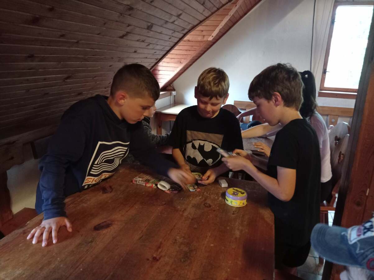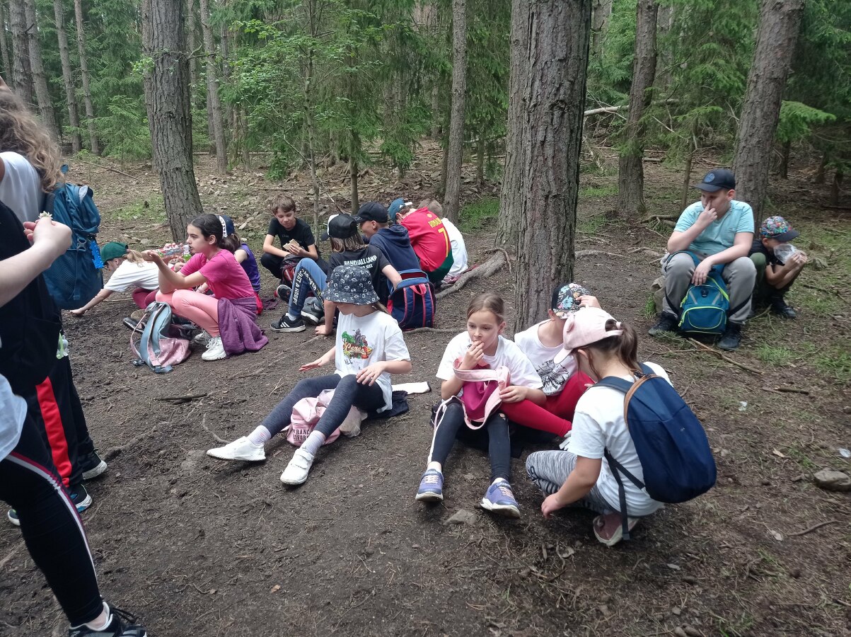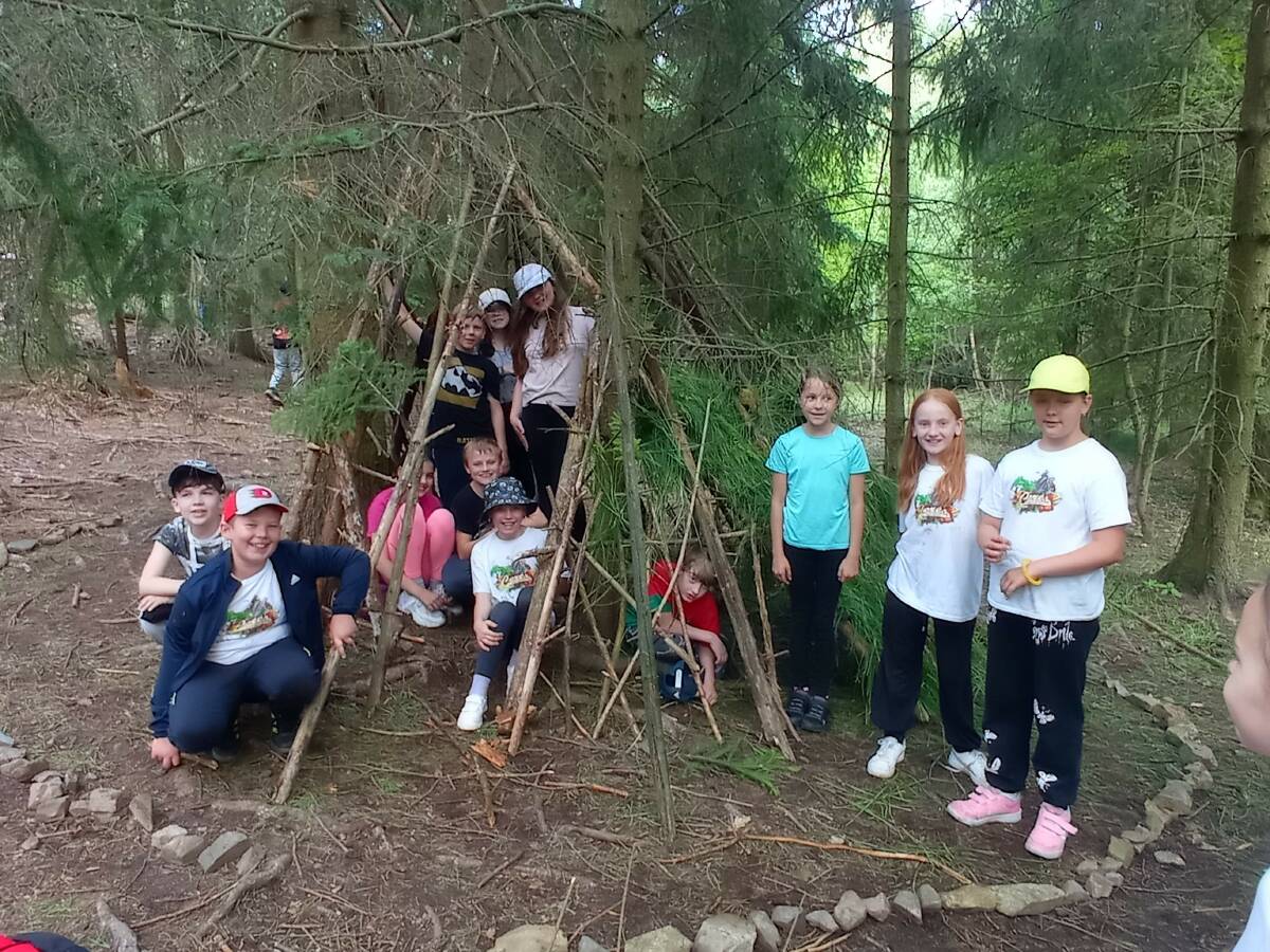 Po dnešním dopoledním učení jsme se vydali na celé odpoledne do lesa. Tam nám animátorky daly za úkol postavit v týmech lesní příbytek tak, aby se do něho schoval alespoň 1 člověk. Samozřejmě jsme nic nelámali, netrhali ani neničili.