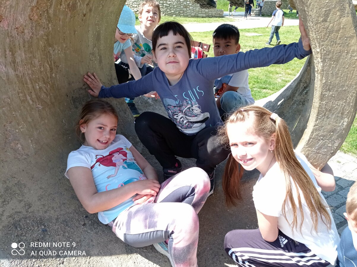 Spolu s kamarády z 1.B jsme hned ráno vyrazili do parku pod Vlašským dvorem. Tam jsme se po dlouhé cestě nejprve pořádně posilnili.