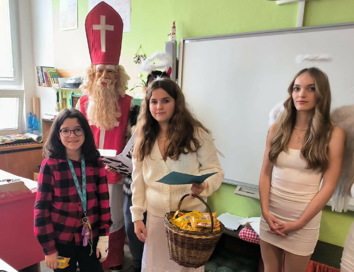 5. prosince chodil naší školou Mikuláš se svou družinou.![]()