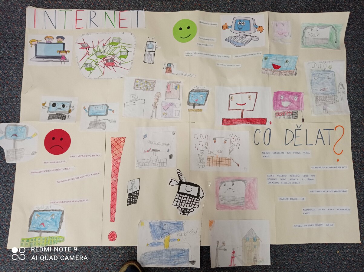 Pustili jsme si zajímavá videa a povídali jsme si o tom, v čem nám internet pomáhá, ale i o tom, jak nám může škodit. Teď už všichni ví, na co si musíme dávat pozor a co dělat, když se dostaneme do problémů.