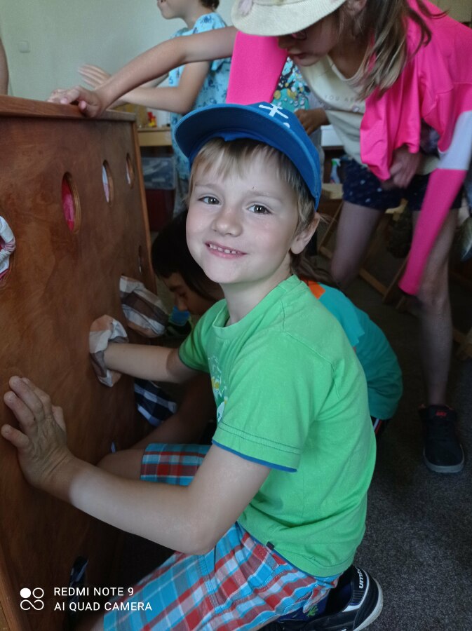 a poslepu, pouze hmatem, zjišťovaly další záhadné přírodniny. Povídali jsme si také o broucích, včelách a mravencích a pátrali jsme po tom, jak se spolu vlastně dorozumívají. Dozvěděli jsme se také, jak se zjišťuje stáří stromů a poznávali stopy zvířat.