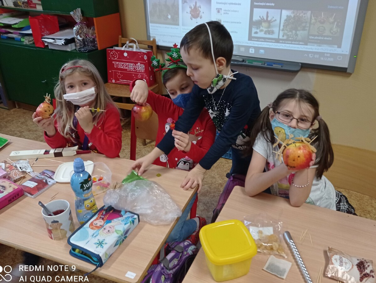 vyrobili jsme si krásné a voňavé svícny z jablíček a povídali jsme si o vánočních zvycích.