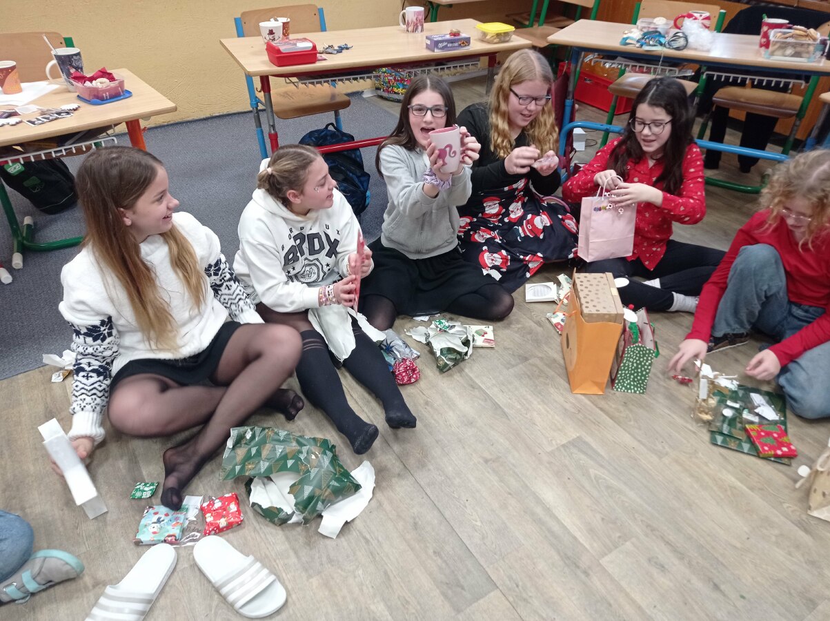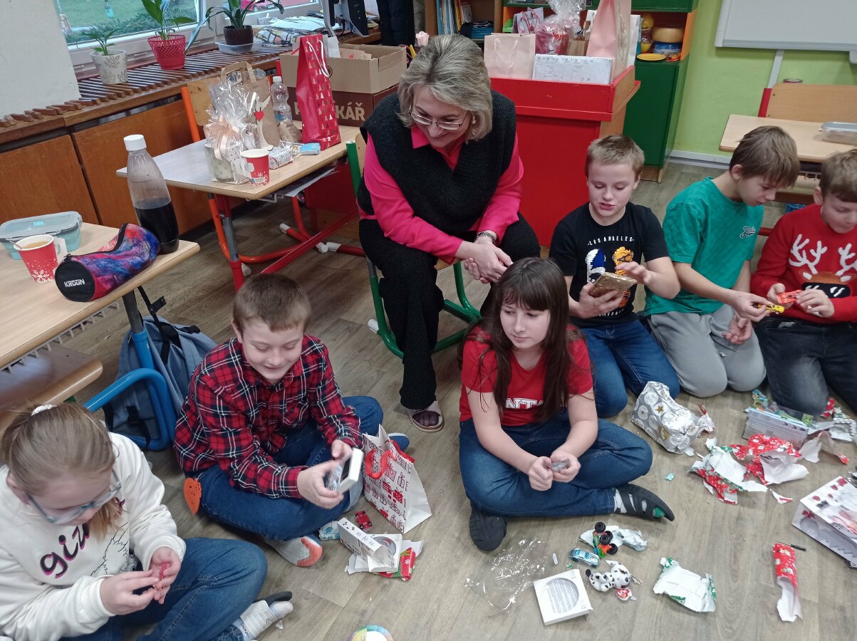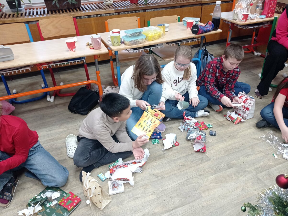 Poslední školní den v roce 2024 jsme si užili ve vánoční náladě. Stromeček, cukroví, čaj a spousta krásných dárečků... Také jsme si dali domácí punč, který nám přivezli a darovali Váchovi.