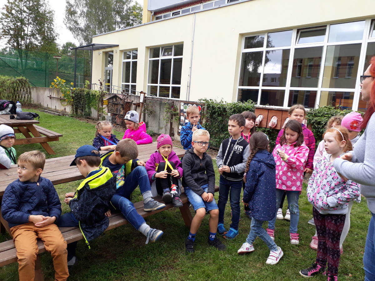 Prvňáčci si vyzkoušeli, že učit se mohou nejen ve třídě, ale i venku – třeba na zahradě.