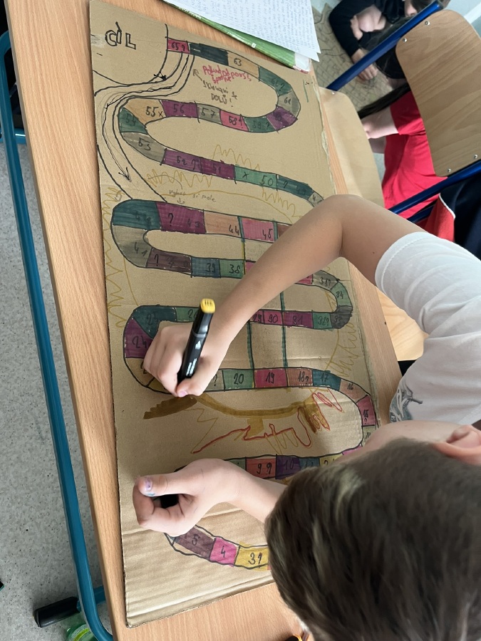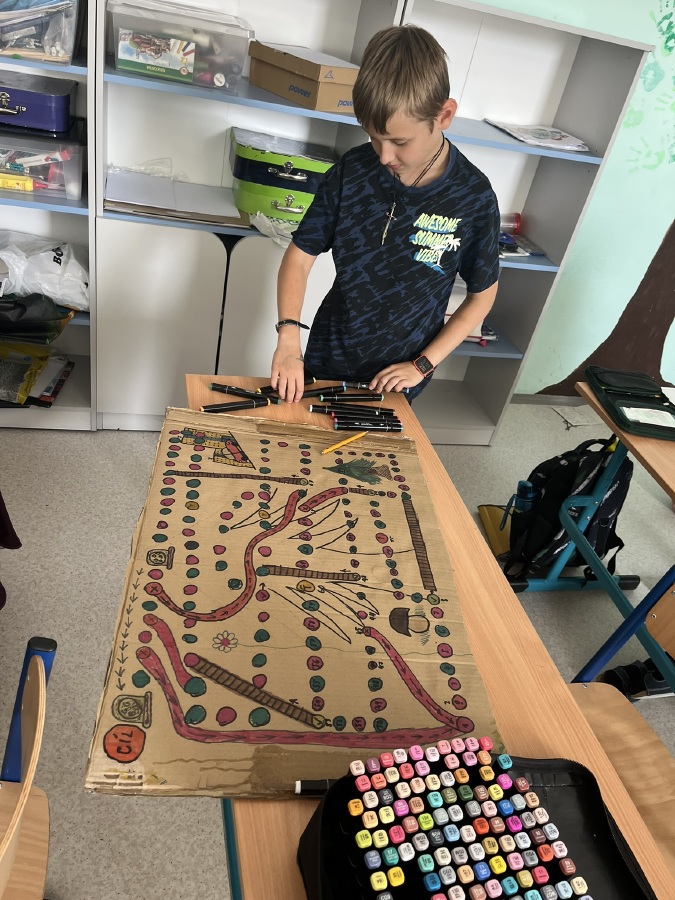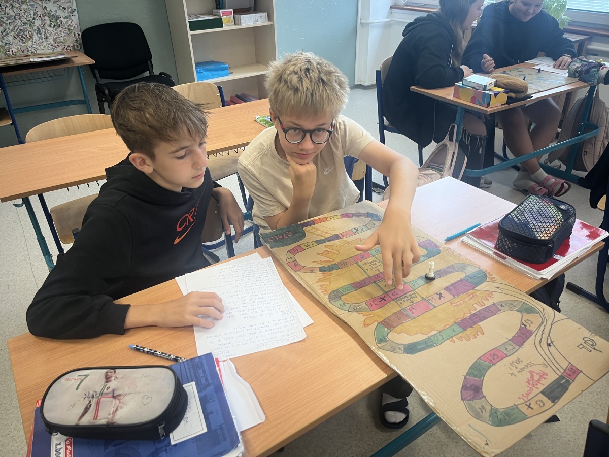 Ve třídě 6.A se hodiny přírodopisu proměnily ve tvořivé a zábavné dobrodružství. Místo tradičního testování znalostí si žáci pod vedením paní učitelky připravili originální stolní hru, která jim pomáhá zopakovat si učivo z celého druhého pololetí.