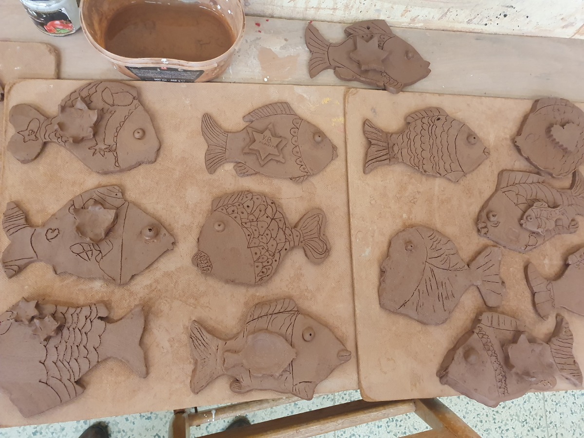 Děti z 5. B byly v pátek tvořit v keramické dílně. Seznámily se s technologií výroby a vytvořily krásné keramické svícny ve tvaru vánočních kapříků.