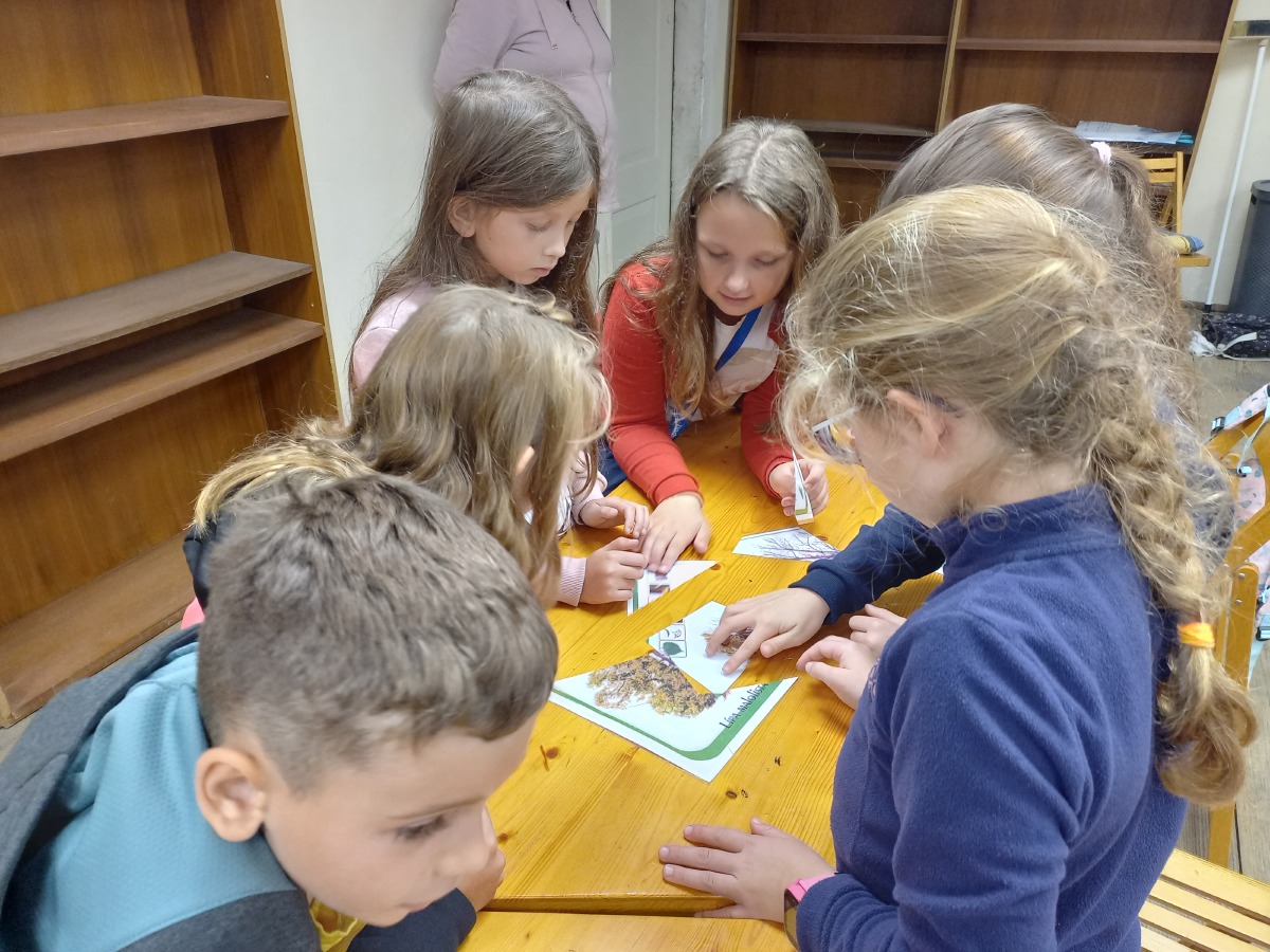 Přestože panovala venku veliká mlha, zámek Kačina jsme našli. Byl tam pro nás připraven program o stromech a keřích v naší přírodě. Vyrobili jsme si leporelo s obrázky různých stromů a keřú, zhlédli krátké video o růstu stromu, proběhli se v zámeckém parku a pěkně jsme si zasoutěžili ve znalostech o přírodě. Vyhráli všichni a to je dobře.