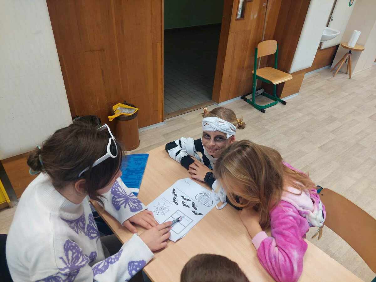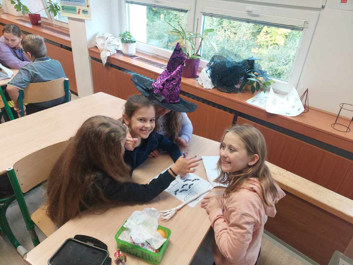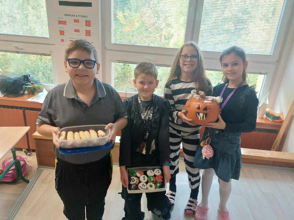 Svátek Halloween slaví každý rád, i my jsme si ho ve 4.C oslavili. Četli jsme si o jeho původu, vypracovávali pracovní listy i vypočítali strašidelné slovní úlohy. Vybarvovali lebku a koukli se, jak se tento svátek slaví v jiných zemích. Kromě Halloweenu jsme si také připomněli Dušičky, které jsou s tímto svátkem spjaty nejen podobným datem, ale i např. keltským původem. Zvláštní poděkování patří maminkám, za upečení fantastické svačiny v podobě krvavých čarodějnických prstů a krásně tematicky upravených koláčků.