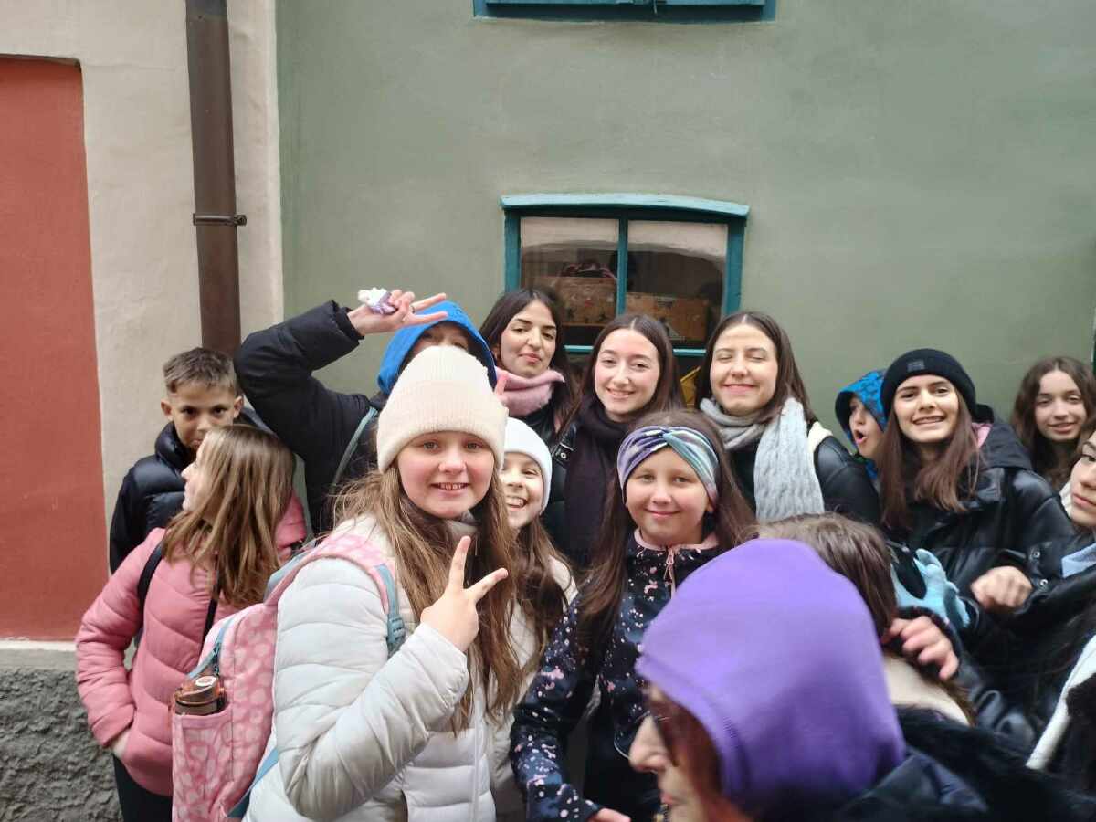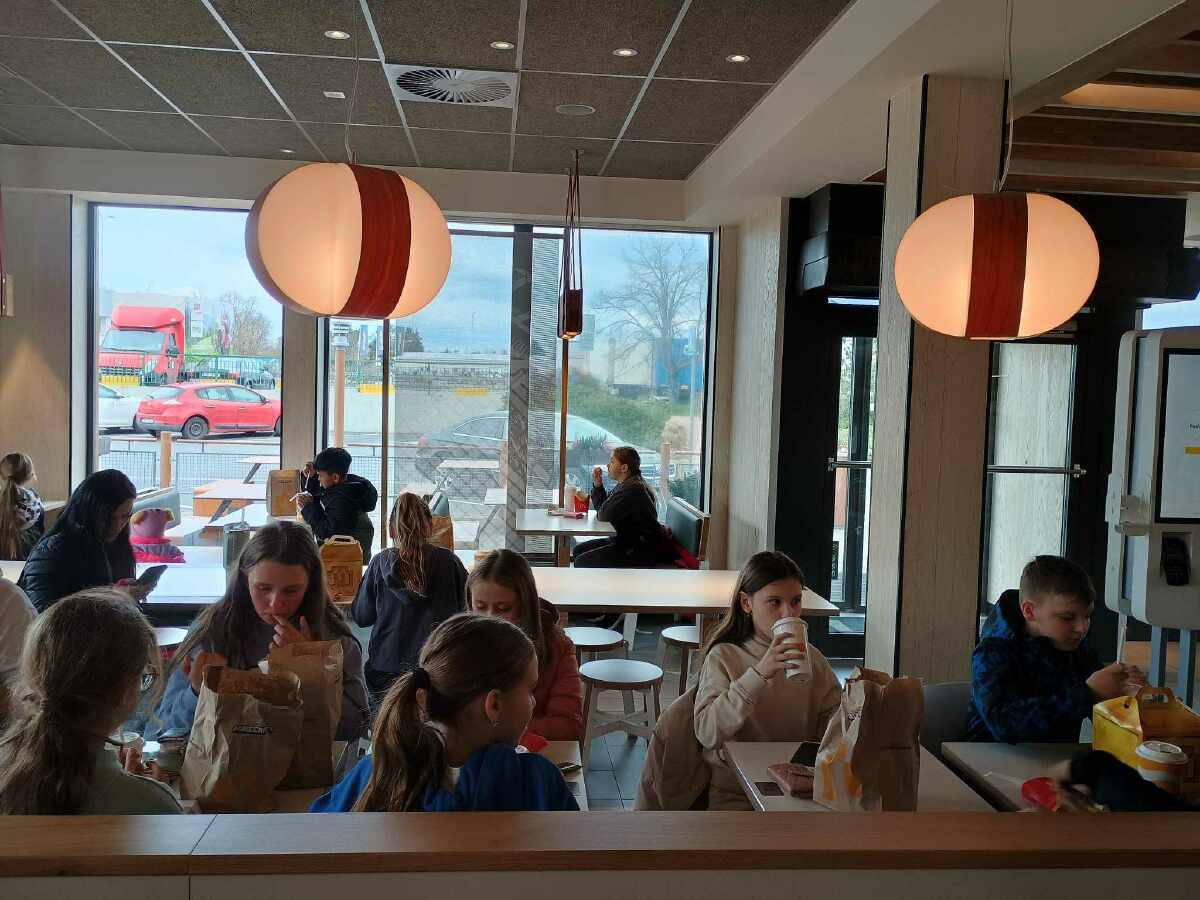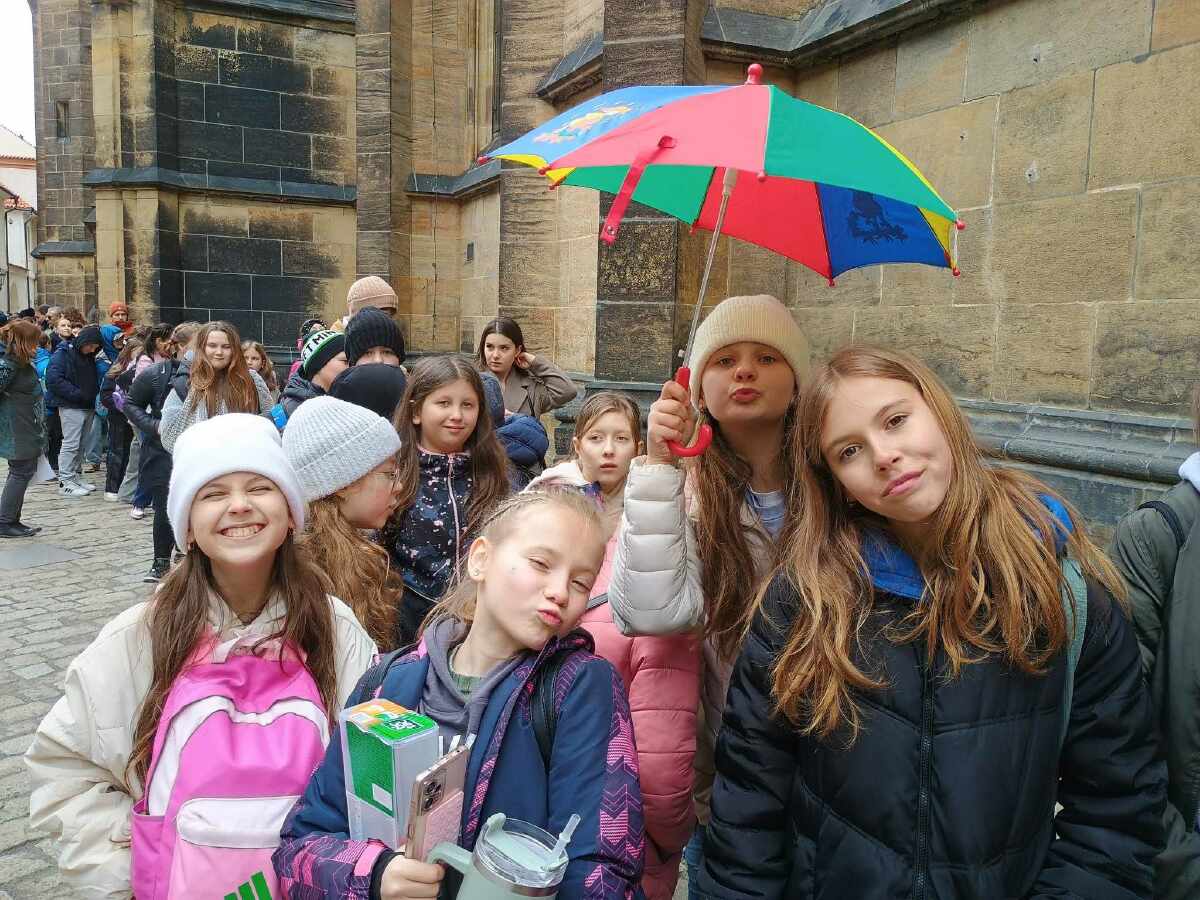 Pražský hrad byl plný turistů z různých zemí, někteří naši páťáci, „bambini“, se stihli i „spřátelit“ s italskými studentkami a studenty. :) Nadešel čas návratu domů. Ale protože nám trochu vyhládlo, raději jsme se cestou ještě zastavili v restauraci McDonalds.