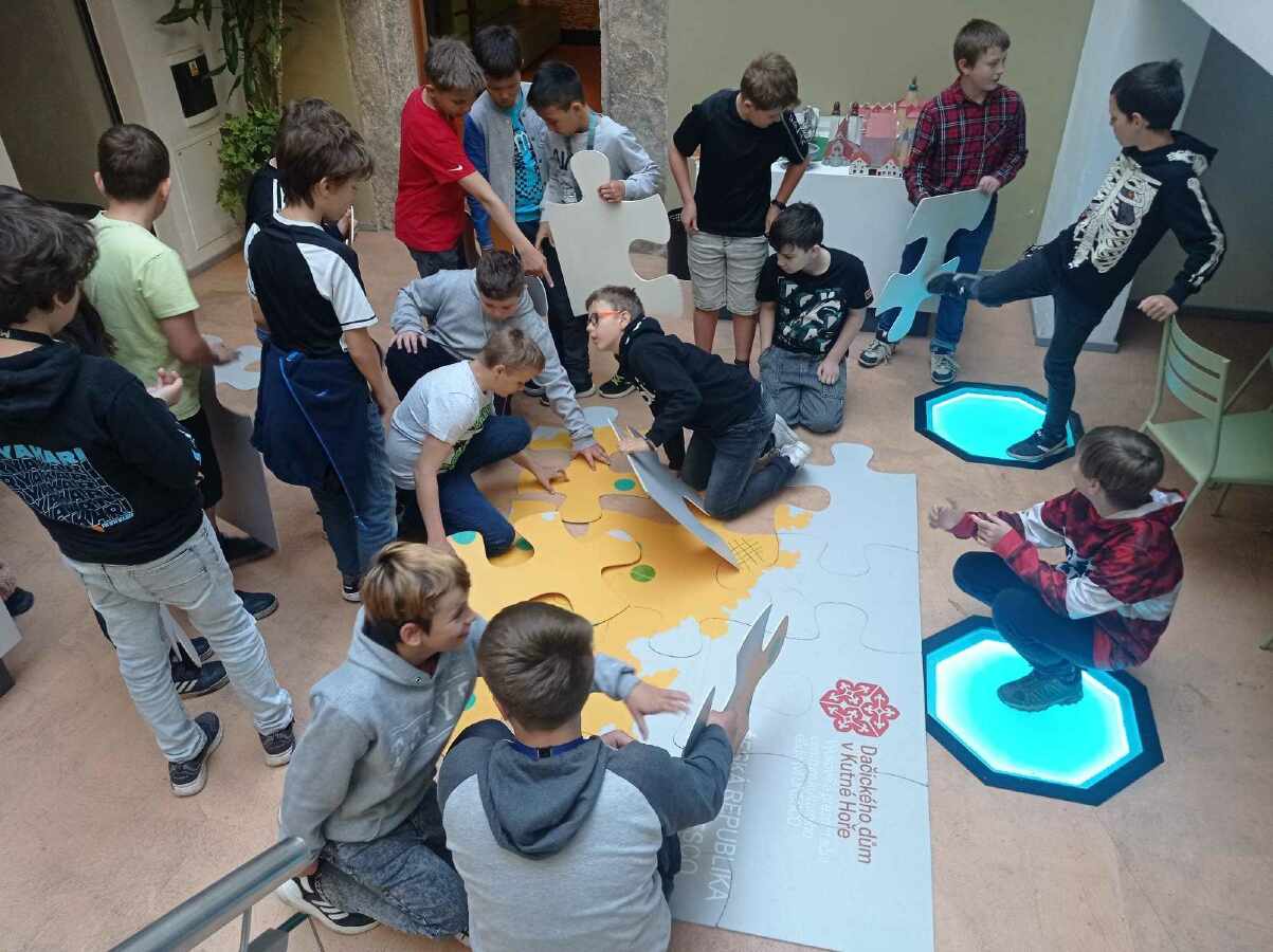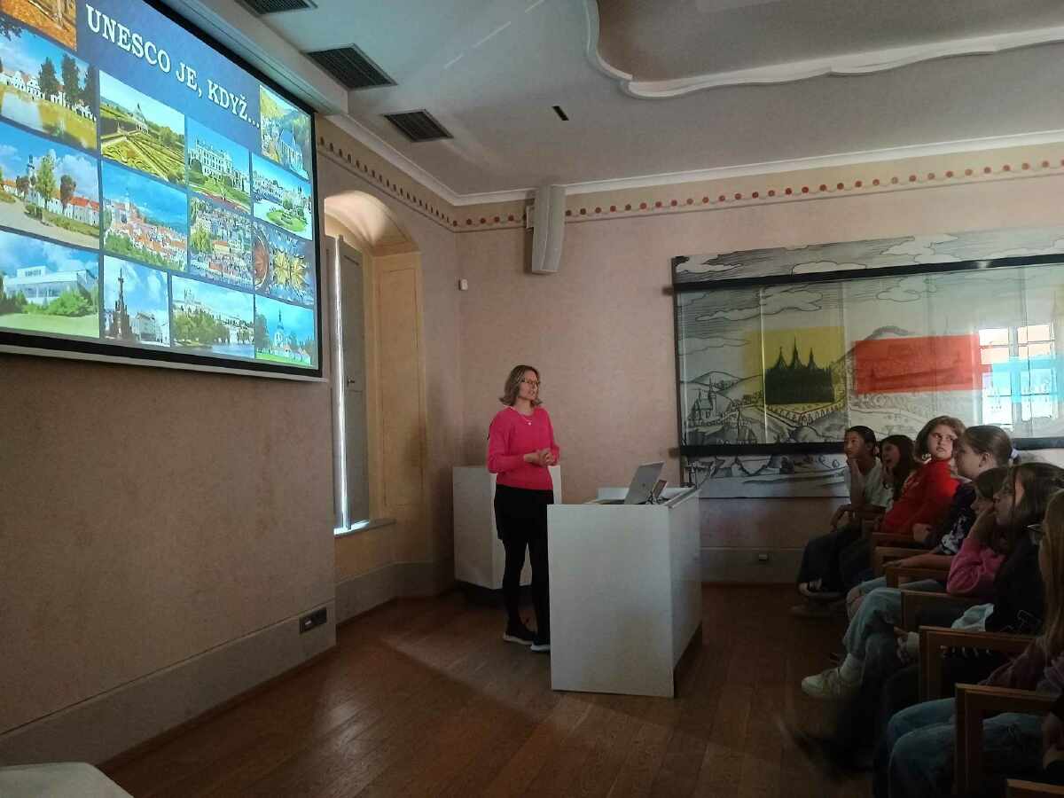 12. května jsme navštívili Vzdělávací a prezentační centrum kulturního dědictví UNESCO Dačický dům. Utřídili jsme si získané informace o českých památkách zapsaných na seznamu UNESCO. Rozdělili jsme si je na 17 hmotných památek – historické centrum Prahy a Průhonický park, Český Krumlov, historický střed města Telče, historické centrum Kutné Hory, poutní kostel sv. Jana Nepomuckého ve Žďáru nad Sázavou, Lednicko – valtický areál, zámek a zámecké zahrady v Kroměříži, vesnická památková rezervace Holašovice, renesanční zámek a zámecký areál v Litomyšli, morový sloup Nejsvětější Trojice v Olomouci, vila Tugendhat v Brně, Třebíč – židovská čtvrť, bazilika sv. Prokopa a zámek, hornický region Krušnohoří, Kladruby nad Labem – krajina pro chov a výcvik ceremoniálních kočárových koní, přírodní rezervace Jizerskohorské bučiny, Západočeský lázeňský trojúhelník (Mariánské Lázně, Františkovy Lázně a Karlovy Vary), Žatec – krajina žateckého chmele. Mezi 9 nehmotných památek patří – slovácký mužský tanec „verbuňk“, vesnické masopustní obchůzky a masky na Hlinecku, obřadní průvod „jízda králů“ na Slovácku a Hané, sokolnictví, loutkářství, modrotisk – technika barvení přírodním indigem, ruční výroba ozdob z foukaných skleněných perlí pro vánoční stromek, vorařství, ruční výroba skla. Složili jsme si velké mapy České republiky a Kutné Hory a rozmísťovali jsme do nich modely památek nebo polštářky, pracovali jsme s dotykovými obrazovkami, viděli jsme vtipný animovaný film Pavla Koutského o Kutné Hoře.