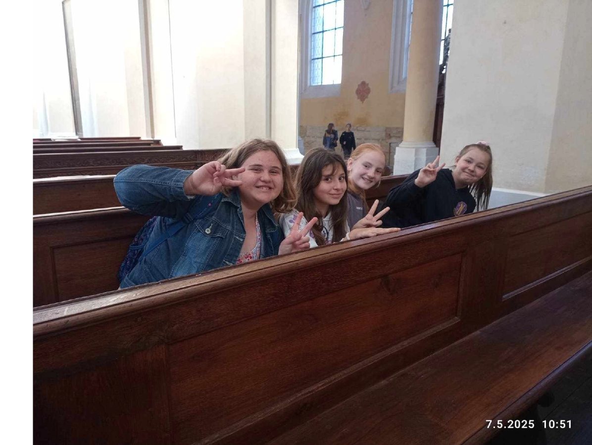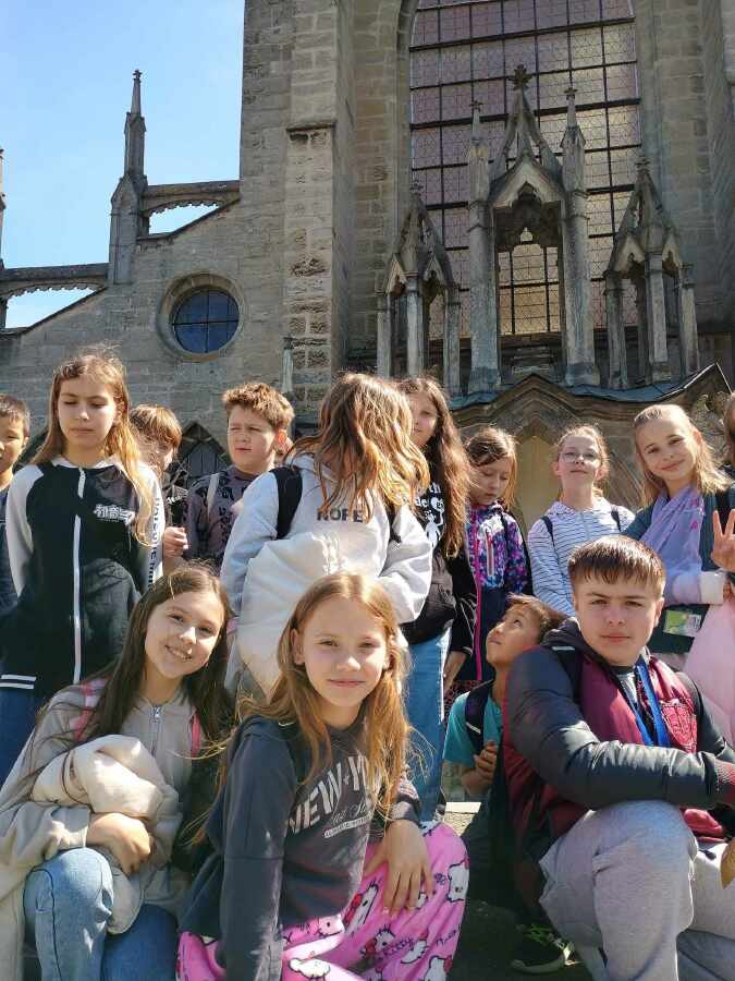 V centru města jsme obešli některé významné gotické a barokní památky a cestou do školy jsme si ještě směnili naše vyplněné pracovní listy v informačním centru na Palackého náměstí za drobné dárky.