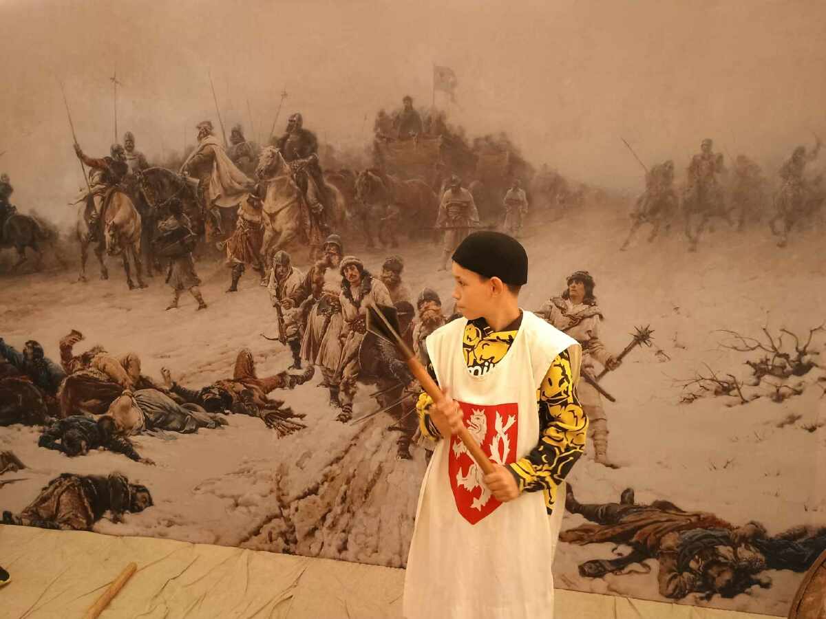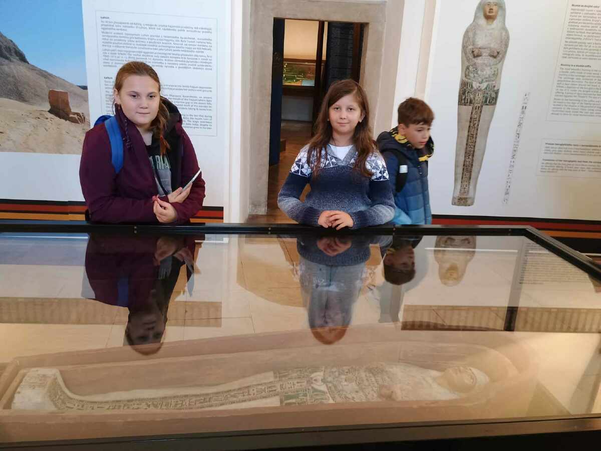 Nenechali jsme si ujít ani aktuální interaktivní výstavu „Kutná Hora husitská“, vytvořenou k 600. výročí bitvy u Malešova. Děti si zde měly možnost prohlédnout archeologické nálezy a vyzkoušet repliky husitských zbraní i dobové oděvy, také zjistit, co husité jedli. Menší skupinka dětí si ještě před odchodem z muzea prohlédla exponáty výstavy „Ve stínu pyramidy“, např. nejkrásnější starověkou mumií u nás - Hereret, což česky znamená Květina.