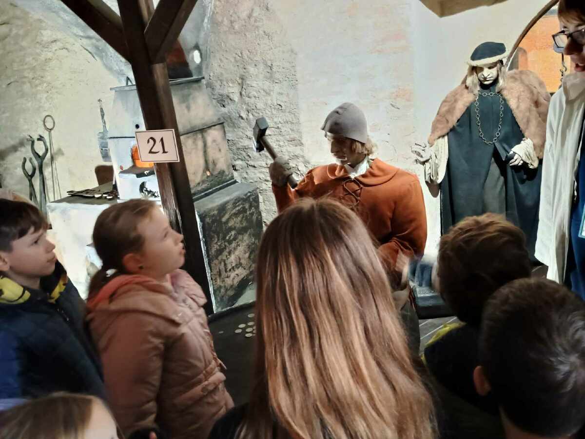Putování jsme zakončili v havířské osadě a ve sklepní místnosti nádvoří, ve které jsme viděli cestu zpracování stříbra – od vytěžené rudy, po ražbu pražského groše.