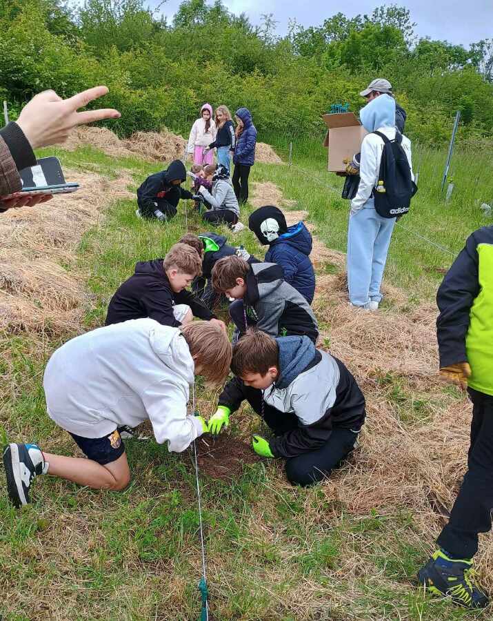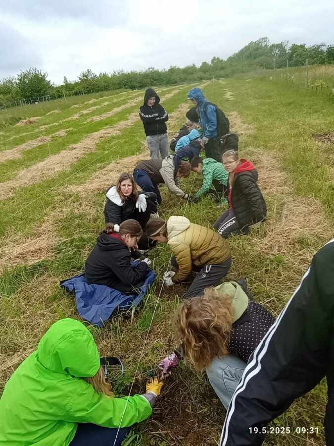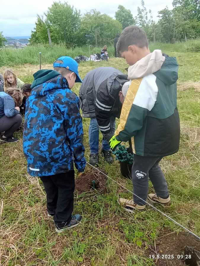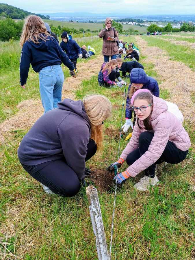Sazenice Rulandského modrého vína (Pinot Noir – hrozen připomíná šišku), starobylé francouzské odrůdy, kterou do Čech přivezl český král a římský císař Karel IV., jsme ukládali do připravených jamek, porovnali jsme jim kořínky a přihrnuli hlínou, dbali jsme, aby sazenice byly stejně hluboko v zemi a směřovaly k nataženému provázku. Za tři roky budou na této dvouhektarové vinici sklízet první úrodu. Pan Kocián nám ale přislíbil, že se setkáme dříve, na podzim nám ukáže, jak se sklizené hrozny lisují a přiveze k ochutnání čerstvou vinnou šťávu.