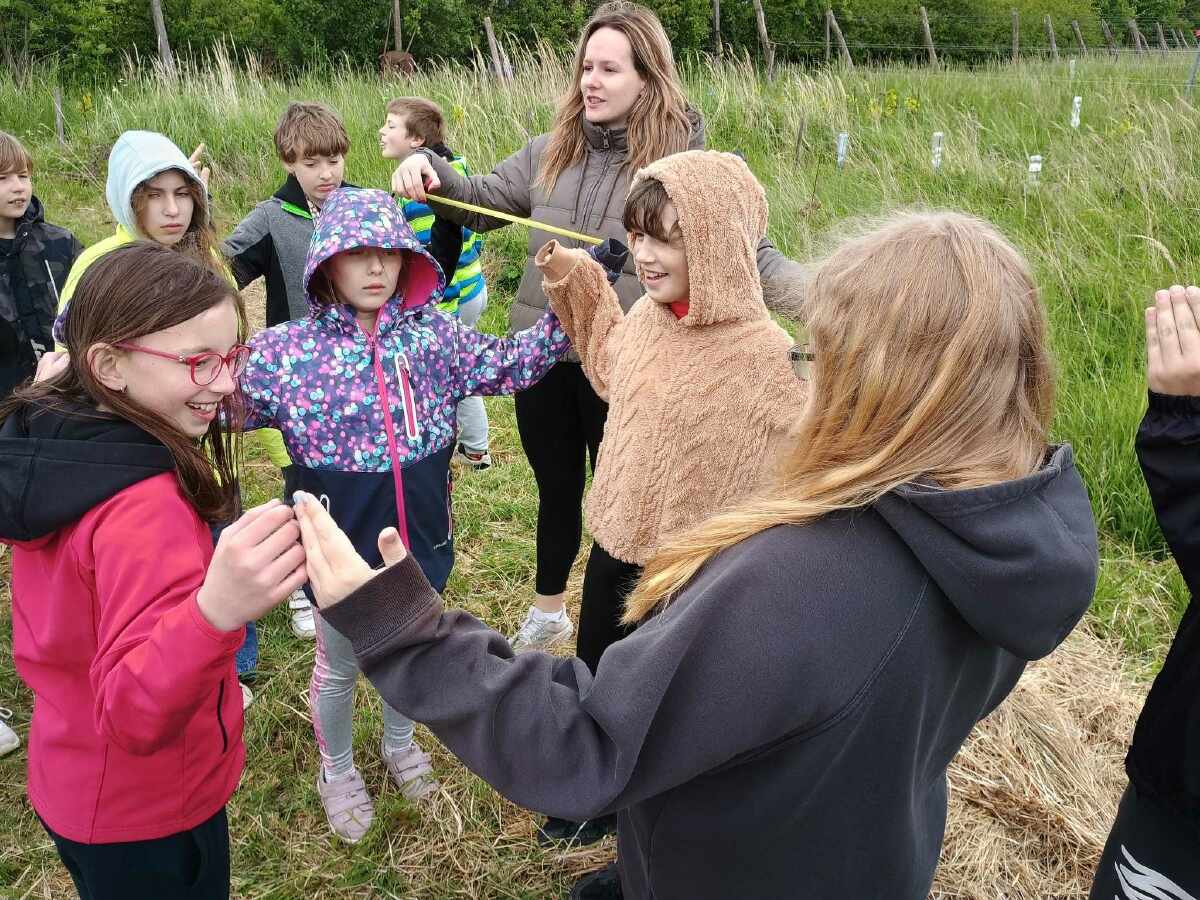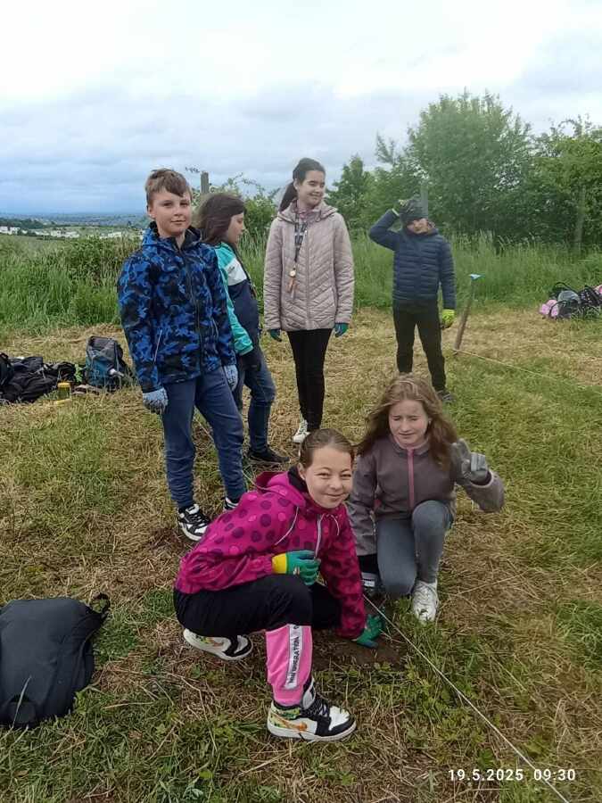 Ráno jsme se sešli s paní lektorkou a vinařem Jiřím Kociánem na smluveném místě za Kutnou Horou a společně jsme zamířili na vinici. Vinařský program se skládal ze dvou částí – poznávací hry a sázení sazenic vína. Při poznávací hře děti hledaly 6 kartiček a zapisovaly si nalezené obrázky do pracovních listů, kde luštily tajenku. Povídaly si o podmínkách pěstování vína, ale i o plošných mírách, zkoušely vymezit metr čtvereční. S panem vinařem si připomněly zvířata, která se mohou objevit na vinici: brouci švižníci a tesaříci, pavouci, žížaly, škvoři, mravenci, ještěrky, hraboši, puštík, káně, poštolka…