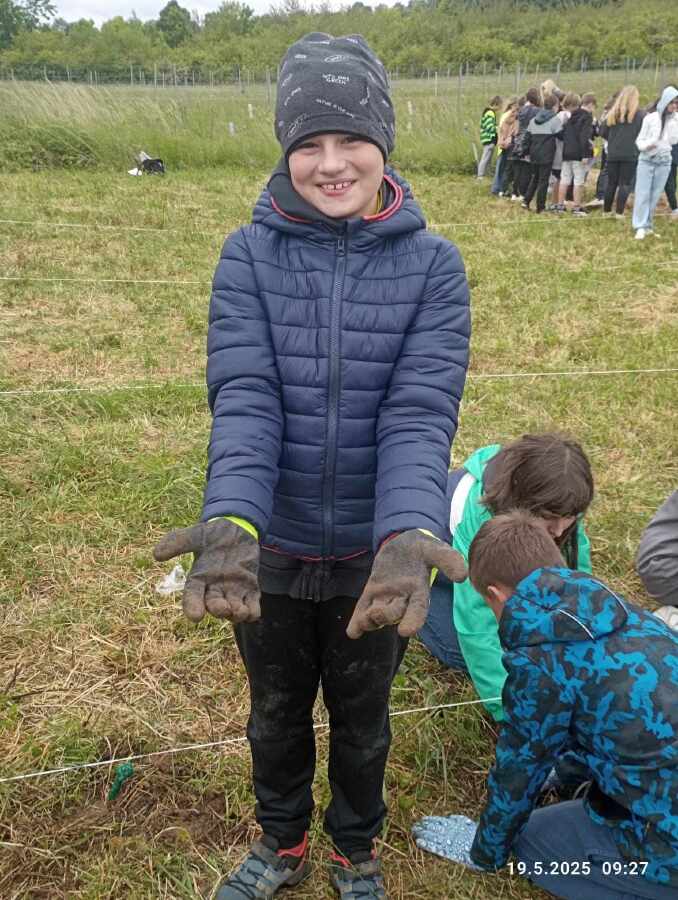 Dnešní den nebyl sice slunečný, ale alespoň jsme nezmokli. Cestou do školy si ještě některé dívky natrhaly kytičky krásného lučního kvítí, milovnice zvířat si zas nasbíraly šnečí rodinky. A omlouváme se rodičům za ušpiněná kolena...