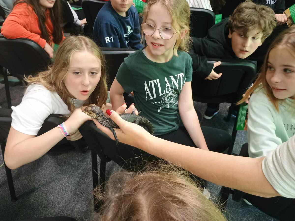22.dubna jsme si připomněli Den Země. Nejdříve jsme si povídali o ekologii a ochraně životního prostředí, vyplnili jsme si pracovní list a potom jsme společně s dětmi z 5.A a 5.B navštívili školní divadlo, kde si pro nás zaměstnanci Krokodýlí ZOO Praha připravili zajímavý program o svých zvířatech, některá z nich nám i přivezli, abychom se s nimi seznámili. Škoda jen, že jich nebylo víc!