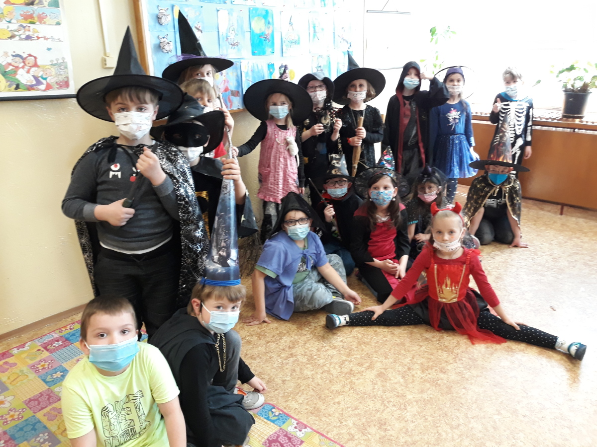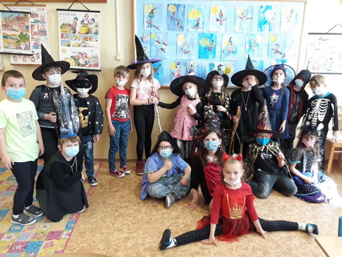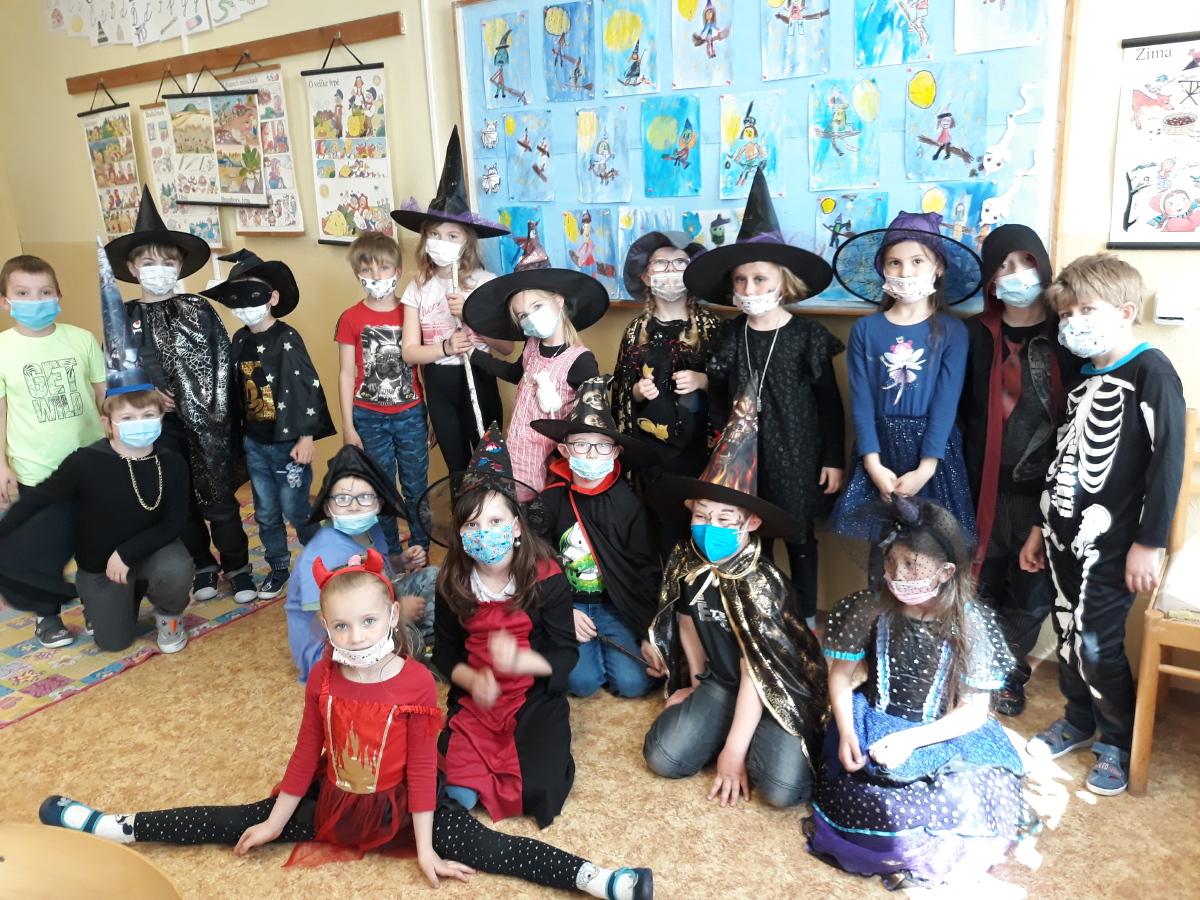 1.C byla dnes plná nadpřirozených bytostí. Sešli se zde čarodějové, čarodějnice a jiné strašidelné postavy. Měli plno práce. Museli pomoci malé čarodějnici počítat a rýsovat. Napsali několik vět o kouzlení, podívali se na pohádku o Malé čarodějnici a převyprávěli ji. Nakonec dostali všichni sladkou odměnu.