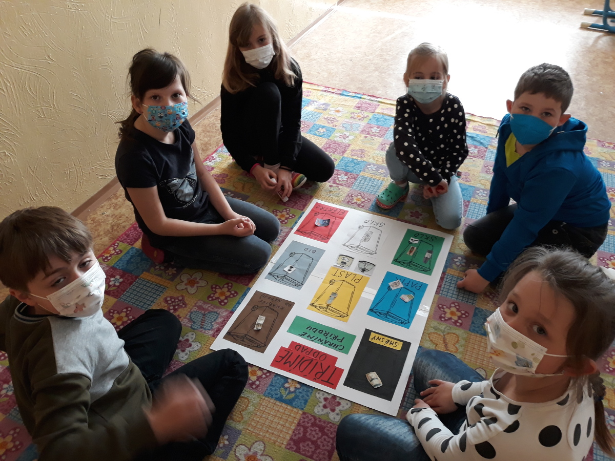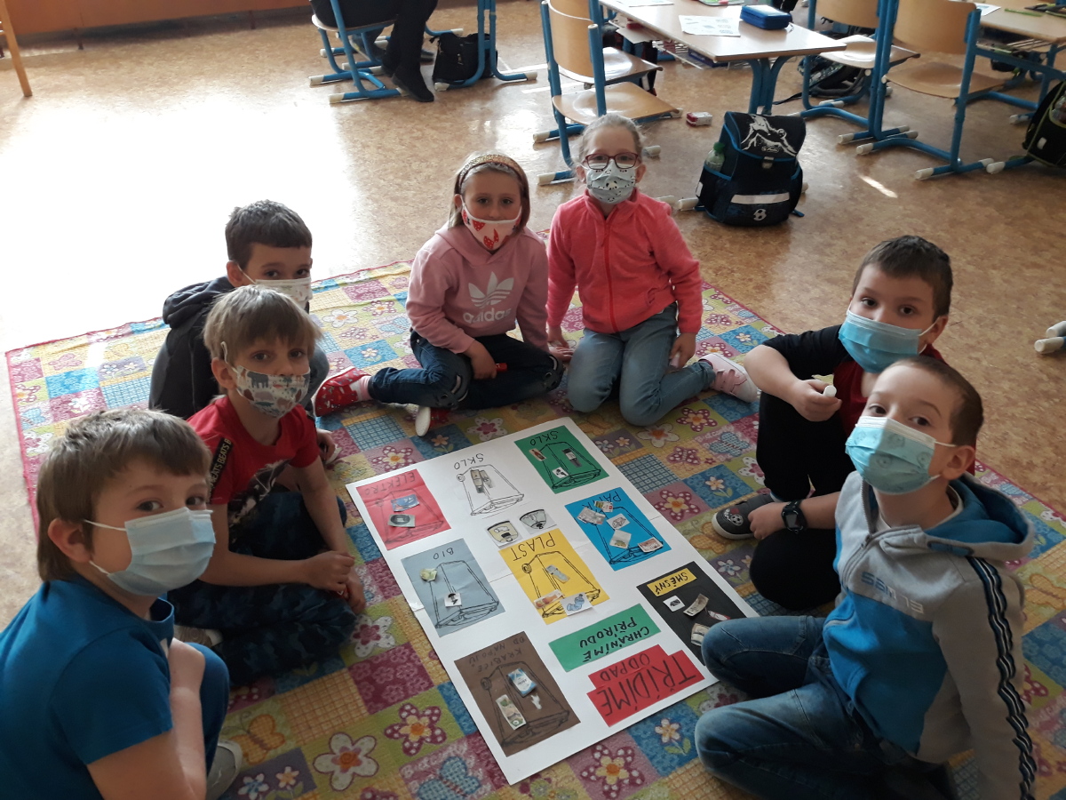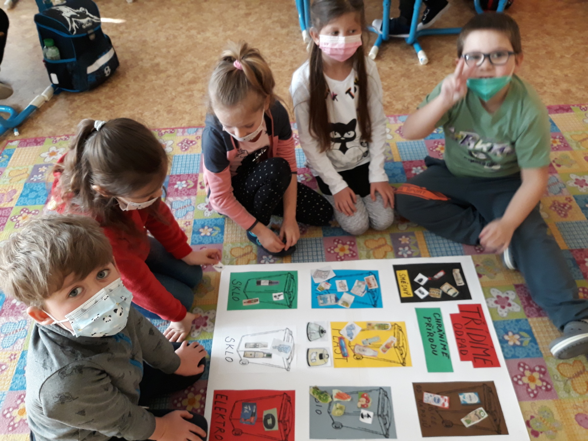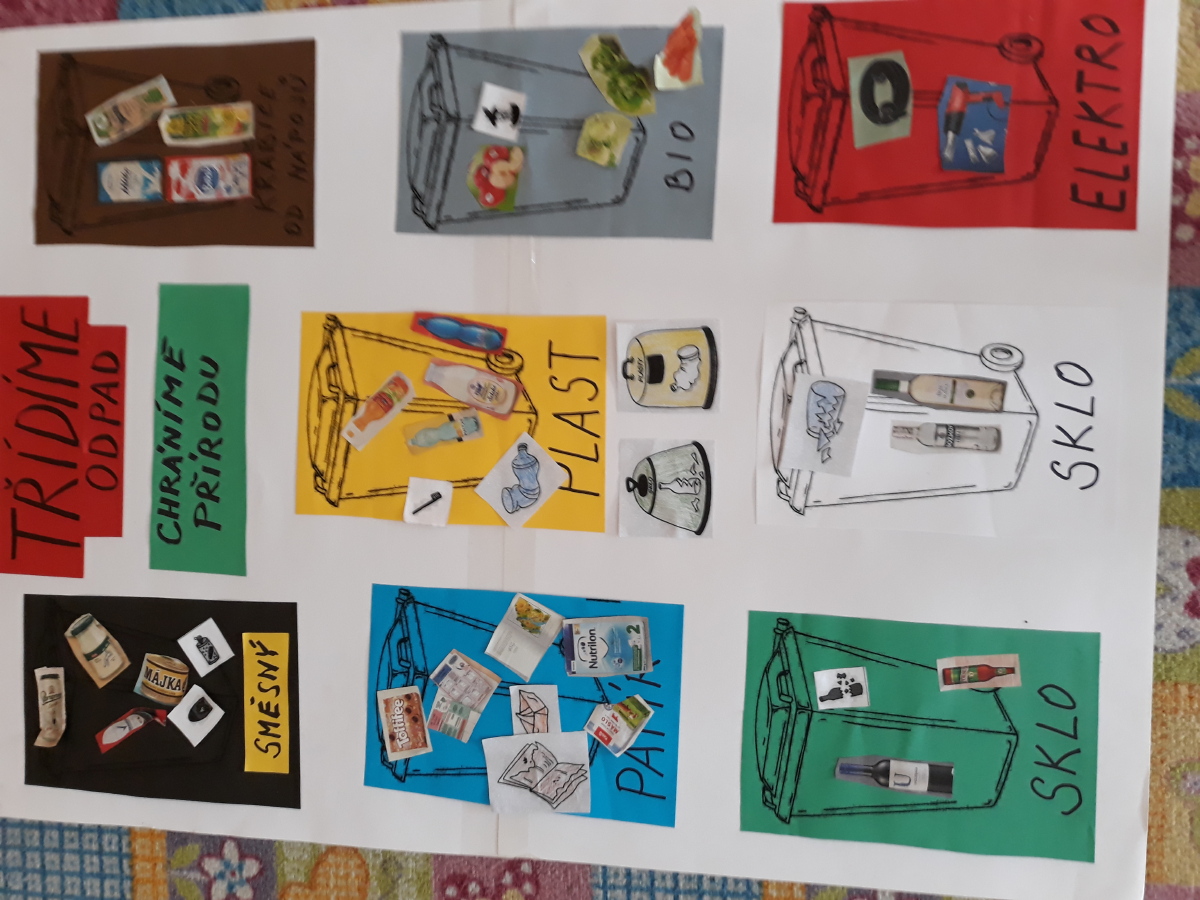 Naše Země je to nejkrásnější a také pro nás jediné místo k životu. Musíme se o ni pěkně starat. To byla základní myšlenka letošního Dne Země. Vymýšleli jsme, jak může každý z nás přispět. Možností je více a my jsme se soustředili na třídění odpadu. Poslechli jsme si písničky o třídění obalů, o popelářích a zkoušeli třídit alespoň obrázky odpadu. Ve středu, až půjdeme na vycházku, se na různě barevné kontejnery podíváme osobně. A protože už umíme číst, přečteme si informace, které jsou na nich uvedeny.