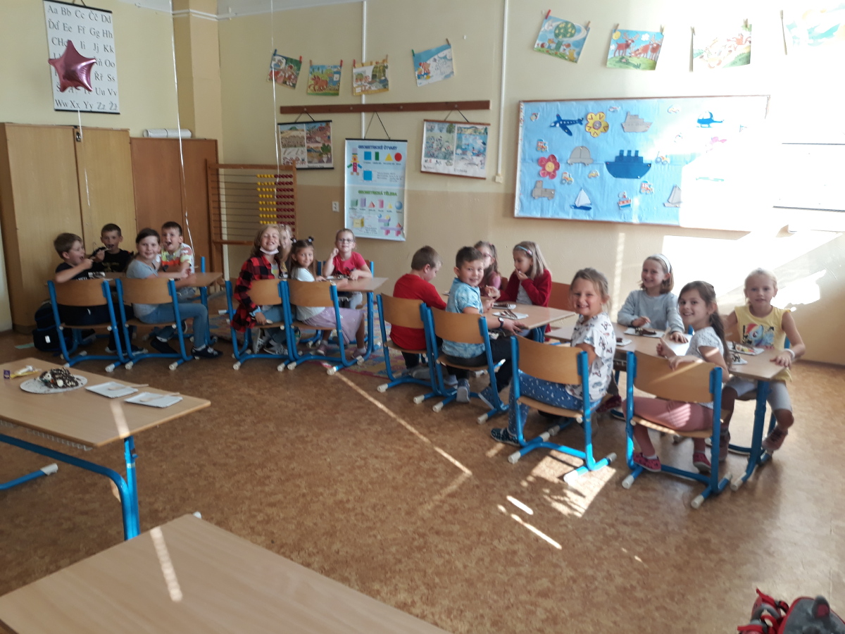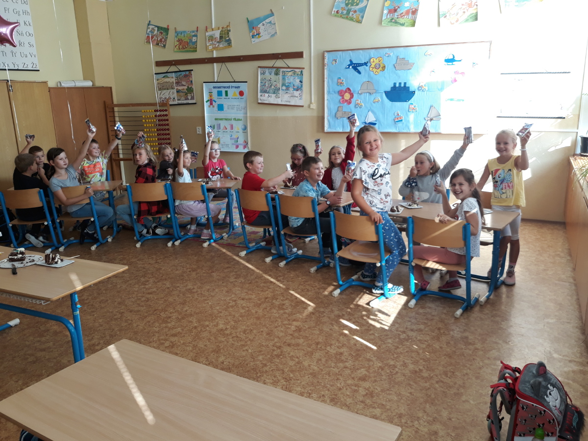 Dnešní hodina pracovních činností proběhla trochu jinak než obvykle. Jedna naše spolužačka slavila narozeniny. Při přípravě oslavy jsme si zopakovali, jak se prostírá, jak se chováme u stolu. Vše jsme si také hned vyzkoušeli. Spolužačce jsme popřáli, pochutnali jsme si na výborném dortu a vše po sobě také uklidili. Moc se nám to líbilo.