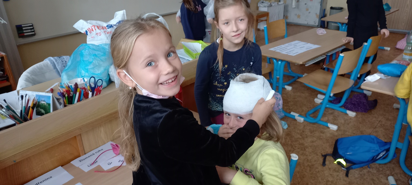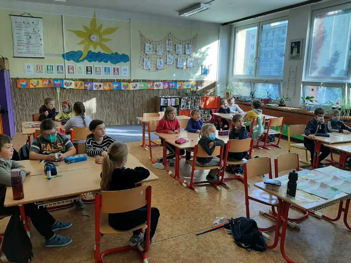 Jako každý rok i v letošním říjnu proběhl na naší škole sportovně branný den. Nejprve jsme nacvičili evakuaci školy. Po návratu do školy jsme se věnovali tématům ochrany lidí při mimořádných událostech. Sami jsme si vyzkoušeli, jak ošetřit zraněného, jak se pohybovat v silničním provozu, aby se nám nic nestalo. Poznávali jsme přírodniny a při pobytu venku jsme se proběhli na hřišti a opět řešili dopravní situace v okolí naší školy.