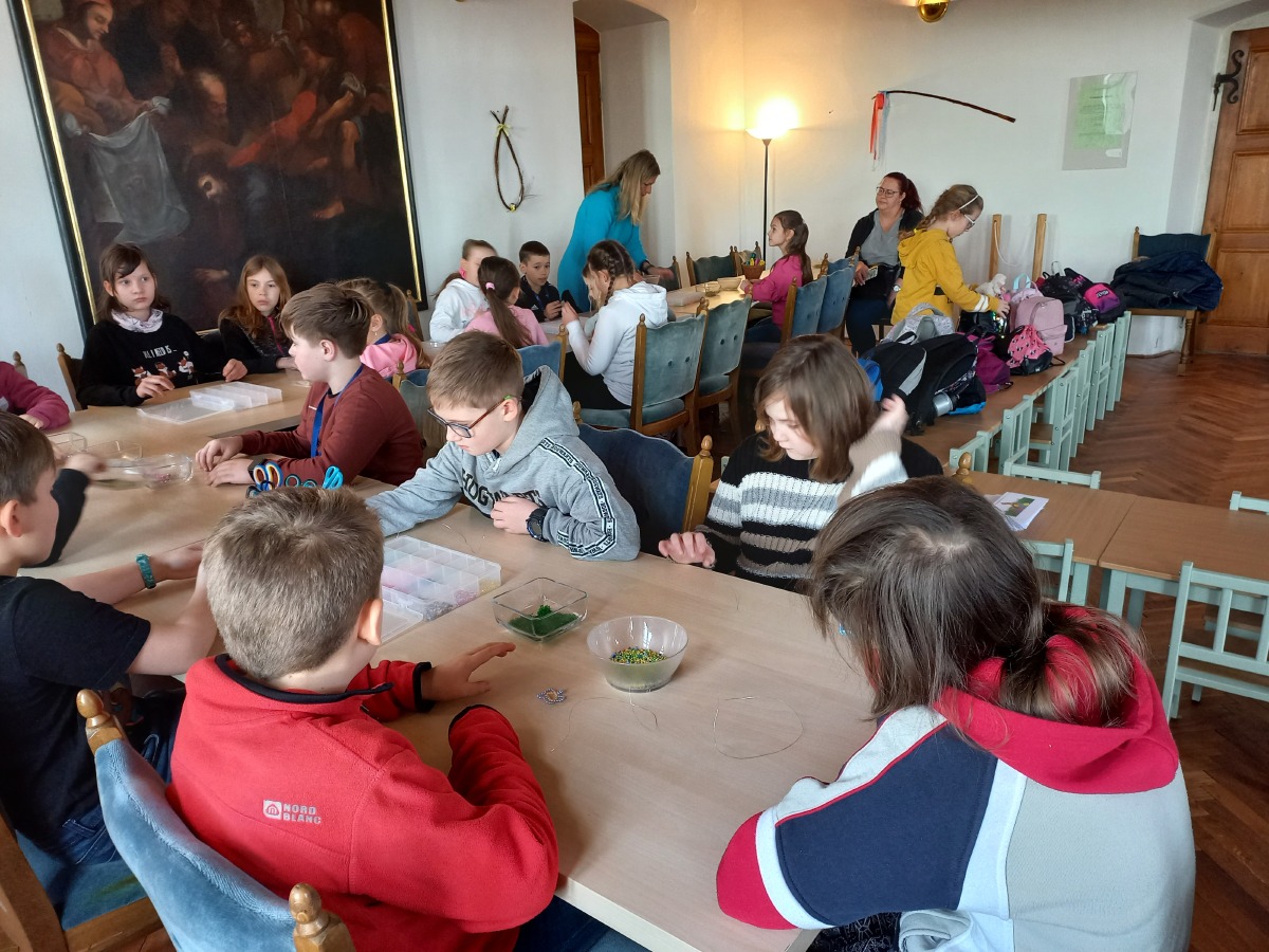 Na letošní Velikonoce jsme se v naší třídě připravovali s předstihem. Vyráběli jsme vázaná vajíčka, jarní závěs a velikonoční zápichy. Poslední den před prázdninami jsme navštívili Hrádek. Zhlédli jsme tam velikonční výstavu a vyrobili si krásnou korálkovou kytičku.