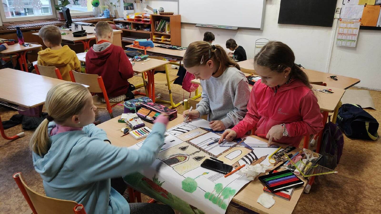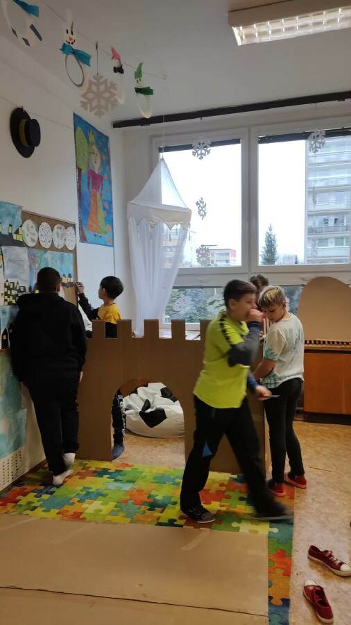 Ve středu 1.2. probíhal na naší škole Den třídního učitele. Děti měly možnost vyzkoušet si své bruslařské umění na kutnohorské ledové ploše. Užili si to nejen ti zkušenější bruslaři, ale i začátečníci. Než jsme ale na led vyrazili, pustili jsme se společnými silami do "stavby středověkého hradu" pod dozorem vrchního stavitele Lukáše. Každý se zapojil podle svých možností, někdo vymýšlel erb, vlajku, razil grošíky, připravoval výtvarný materiál, někdo vytvářel hradby, dívky malovaly chrám svaté Barbory.